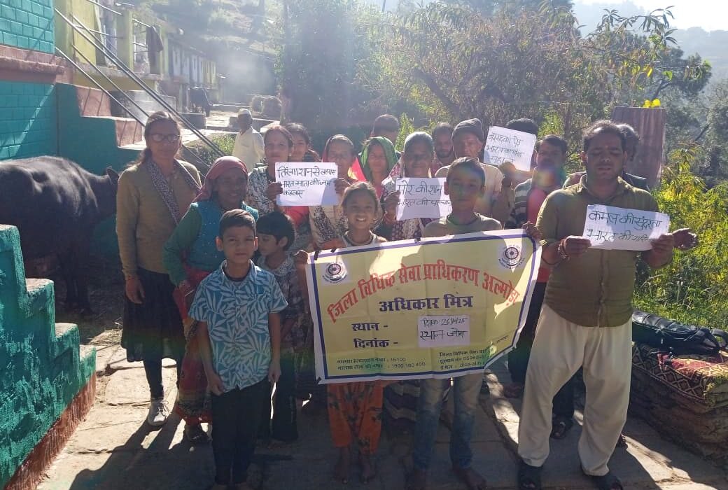 सचिव,जिला विधिक सेवा प्राधिकरण अल्मोड़ा शचि शर्मा के आदेशानुसार दिनांक -26/10/2025, को “राष्ट्र निशान जागरुकता अभियान” ( राष्ट्रीय प्रतीक जागरुकता मिशन) दो दिवसीय जागरुकता अभियान के अनुक्रम में अधिकार मित्र हेमा पाण्डेय, कुसुम,संदीप सिंह नयाल,पंकज भगत,बबीता जोशी, रजनी, किरन आर्या, दीपक कुमार पाण्डे, दीपा चौधरी, दीप चंद्र, हिमानी खोलिया, ममता नेगी, सुनीता रानी, नीम बिनवाल, महेंद्र सिंह, नंदन सिंह फर्त्याल, प्रकाश राम, नीमा कोहली, दीपा भोजक,कंचन भट, आदि द्वारा दूरस्थ दुर्गम क्षेत्र ग्राम -बसगांव, जोव ,वमन, खाड़ी, गैलेख, बस्युखेत,स्यालसुना, ताम्रनगरी, गुडौली, डाभर, विवेकानंद इण्टर कालेज आदि में विधिक जागरूकता शिविर नुक्कड़ नाटक व रैली का आयोजन किया गया। उपस्थित व्यक्तियों को राष्ट्रीय प्रतीक और नाम (अनुचित प्रयोग निवारण) अधिनियम, 1950; भारत का राज्य प्रतीक (अनुचित प्रयोग प्रतिषेध) अधिनियम, 2005; भारत का राज्य प्रतीक (प्रयोग विनियमन) नियम, 2007 और संशोधन नियम, 2010; साथ ही मोटर वाहन अधिनियम, 1988 और केंद्रीय मोटर वाहन नियम, 1989 के प्रासंगिक प्रावधान आदि विषयों के संबंध में जागरूक किया गया एवं नालसा (नशीली दवाओं के दुरूपयोग के पीडितों के लिए कानूनी सेवाएं) योजना, 2024, लैंगिक न्याय,नालसा हेल्पलाइन नंबर 15100, पोक्सो अधिनियम व आगामी दिनांक 13/12/2025 को आयोजित राष्ट्रीय लोक अदालत के विषय में भी जानकारी दी गई।लोक अदालत के पंप्लेट भी वितरित किये गये।