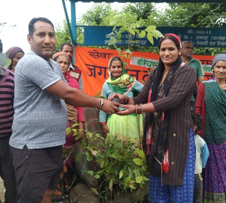 अल्मोड़ा| भेषज विकास इकाई अल्मोड़ा व सहयोगी संस्था जगमोहन दीनदयाल ग्रामीण स्वरोजगार संस्था बसगांव जयंती के द्वारा आयोजित विकासखंड लमगड़ा में हरियाली पर्व के शुभ अवसर पर संकुल सुरखाल, भटयूड़ा ध्यूलीधौनी , बसगांव छानाखरकोटा में 415 कृषकों को 12450 तेजपत्ता के पौधे वितरित करते हुए पौधारोपण सफलतापूर्वक संपन्न किया गया|