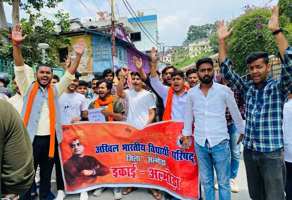 यह धरना प्रदर्शन अल्मोड़ा के चौघानपाटा में एबीवीपी के कार्यकर्ताओं द्वारा किया गया जिसमें उन्होंने सरकार से भर्ती घोटालों के लिए सीबीआई जांच की मांग की और भ्रष्टाचारियों के खिलाफ कड़ा विरोध प्रदर्शन भी किया इस विरोध प्रदर्शन में प्रदेश छात्र संघ चुनाव प्रभारी और छात्र संघ अध्यक्ष दीपक उप्रेती, प्रदेश सहमंत्री राजन जोशी, नीरज बिष्ट, रोहन भोजक, ऋषि भाकुनी, भारतेंदु कांडपाल, राहुल कुमार, विवेक तिवारी, मोनू, भरत गडिया, विजय सिंघवाल, दीपक जोशी शामिल रहे।