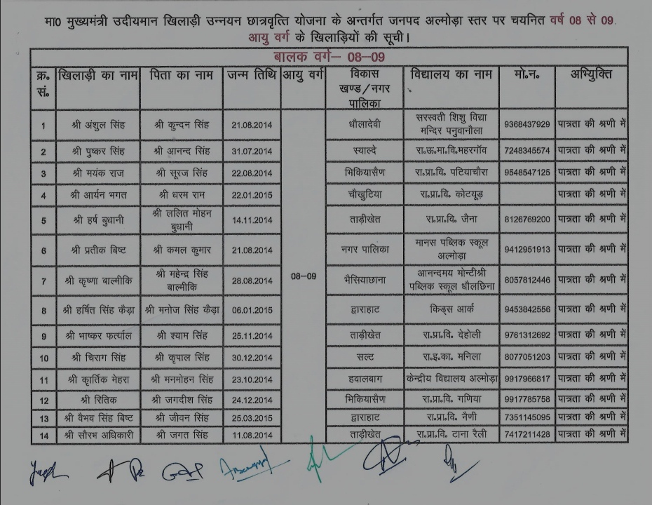 अल्मोड़ा -: ‘मुख्यमंत्री उदयमान खिलाड़ी उन्नयन खेल छात्रवृत्ति योजना’ में पांचवी के छात्र अंशुल बिष्ट ने जिले में प्राप्त किया प्रथम स्थान