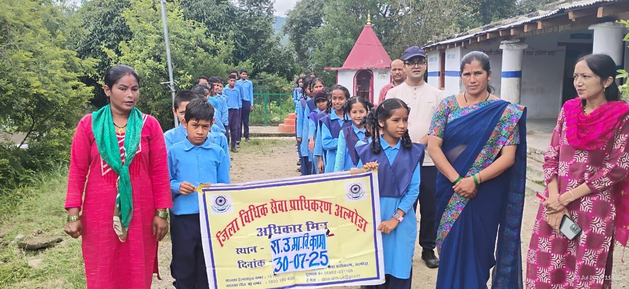 उत्तराखंड राज्य विधिक सेवा प्राधिकरण के दिशा निर्देशानुसार एवं अध्यक्ष जिला विधिक सेवा प्राधिकरण,अल्मोड़ा श्रीकांत पाण्डेय के मार्गदर्शन में शचि शर्मा सचिव, जिला विधिक सेवा प्राधिकरण अल्मोड़ा निर्देशानुसार दिनांक -30/07/2025 को विश्व मानव तस्करी विरोधी दिवस (World Day Against Trafficking in Persons) व बाल सुरक्षा यात्रा के अनुक्रम समस्त जनपद अल्मोड़ा के सरस्वती शिशु मन्दिर खादी ,अल्मोड़ा इंटर कॉलेज अल्मोड़ा ग्राम -जाबड़ा ,राजकीय उच्चतर माध्यमिक विद्यालय जलना, राजकीय उच्चतर माध्यमिक विद्यालय महतगांव में अधिकार मित्रों द्वारा विधिक जागरूकता शिविरों का आयोजन किया गया। उपस्थित विद्यार्थियों व ग्रामीणों को मानव तस्करी के कारण, मानव तस्करी की रोकथाम, मानव तस्करी के खिलाफ लड़ाई में एकजुटता दिखाने और पीड़ितों को सहायता प्रदान करना, “बाल सुरक्षा यात्रा” अभियान जो मानव तस्करी के खिलाफ जागरूकता बढ़ाने और बच्चों को बचाने के लिये है जिला विधिक सेवा प्राधिकरण द्वारा आज चलाया जा रहा है, बच्चों के अधिकारों, बाल श्रम, चाईल्ड लाईन नंबर- 1098, पुलिस / इमरजेंसी नंबर- 112, नालसा हेल्पलाइन नंबर 15100, दिनांक- 1 जुलाई 2025 से 90 दिन तक चल रहे मध्यस्थता राष्ट्र के लिए अभियान, पॉक्सो अधिनियम, गुड टच बैड टच आदि विषय में जागरूक किया गया व आगामी दिनांक 13/09/2025 को आयोजित राष्ट्रीय लोक अदालत के विषय में भी जानकारी दी गई तथा पंफ्लेट वितरित किये गए। जनपद अल्मोड़ा के समस्त विधालयों व ग्रामीण क्षेत्रों में विघार्थियों व ग्रामीणों द्वारा मानव तस्करी के खिलाफ जागरूक करने के लिए रैली निकाली गई।