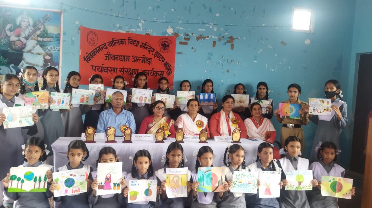अल्मोड़ा। विवेकानन्द बालिका इण्टर कालेज अल्मोडा में भारत स्वभिमान एवं महिला पतंजलि योग समिति अल्मोडा द्वारा पूर्व में मा नन्दा देवी प्रागण में योगा एवं हवन यज्ञ कार्यक्रम में प्रतिभाग करने वाले बालिकाओ को सम्मानित किया गया। इस अवसर पर विध्यालय द्वारा आयोजित हरेला पर्व पर भाषण प्रतियोगिता और पर्यावरण विषय पर चित्रकारिता की प्रतिभागियो को भी विद्यालय द्वारा सम्मानित किया गया। इस अवसर पर भारत स्वाभिमान प्रभारी रूप सिह बिष्ट, महिला पतंजलि प्रभारी माया भोज, महामन्त्री तुलसी सिराडी , तहसील प्रभारी मन्जू जोशी, प्रधानाचार्या श्रीमती गोदावरी चतुर्वेदी ने दीप जलाकर कार्यक्रम की शुरुआत की। इस अवसर पर यशपाल भट्ट एंव शिक्षक , शिक्षिकाएं बहने व विद्यार्थी उपस्थित रहे।