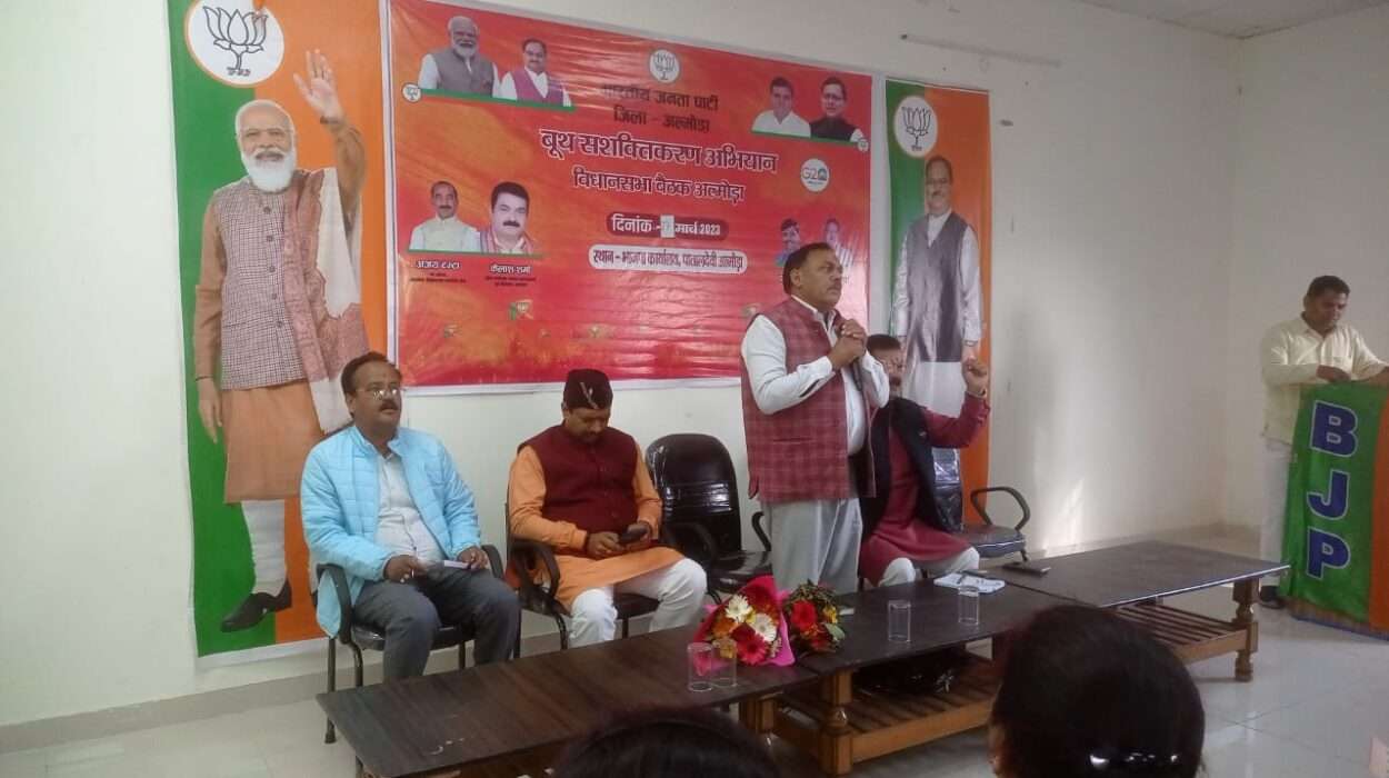 अल्मोड़ा। भारतीय जनता पार्टी के प्रदेश महामंत्री संगठन अजय कुमार ने जिला अल्मोड़ा की एक कामकाजी बैठक पार्टी कार्यालय पातालदेवी में की जिसमें आगामी 30 मार्च तक सभी बूथों के गठन, पन्ना प्रमुख, पन्ने की टोली का गठन 30 तारीख तक पूरा करने के लिए निर्देश दिए। उन्होंने त्रीं शक्ति पर जोर डालते हुए कहा कि बूथ प्रभारी बूथ संयोजक को विस्तारक अपने-अपने शक्ति केंद्र में जाकर प्रत्येक बूथ में बूथ गठन का कार्य करे। उन्होंने कहा स्थाई उत्पादों को बढ़ावा मिल रहा है जिसे हम खाने में परहेज करते थे आज वह पांच सितारा होटलों में परोसा जा रहा है। स्वच्छता अभियान यह केवल मोदी का अभियान ही नहीं यह प्रत्येक व्यक्ति के जीवन में बदलाव लाया है। सरकार का लाभ हर वर्ग को मिल रहा है जिन्हें लाभ मिलना है उनसे बात करना और अपने पार्टी के साथ जोड़ने का काम करना है। बूथ के गठन के समय सबका साथ सबका विश्वास, सर्व स्पर्शी समाजिक दृष्टिकोण को ध्यान में रखकर बूथ का गठन करना आवश्यक है।जिलाअध्यक्ष रमेश बहुगुणा ने कहा बूथ गठन व मन की बात जैसे कार्यक्रम सौ फीसदी सही हो इसकी चिंता हर किसी कार्यकर्ता व पदाधिकारी को करनी चाहिए।बैठक में जिलाध्यक्ष रमेश बहुगुणा,प्रदेश उपाध्यक्ष पूर्व विधायक कैलाश शर्मा , पूर्व जिला उपाध्यक्ष दर्शन रावत, जिला उपाध्यक्ष प्रकाश भट्ट आनंद डंगवाल, मीना भैसोडा़ ,बीना नयाल ,कैलाश गुरुरानी,जिला कोषाध्यक्ष मनोज वर्मा ,जिलामंत्री संजय डालाकोटी, देवाशीष नेगी, वंदना आर्य ,महेश बिष्ट,जिला मिडिया प्रभारी राजेंद्र बिष्ट,सहमिडिया प्रभारी जगत तिवारी, जगदीश तिवारी ,लीला बोरा,संजय बिष्ट, खीम सिंह बिष्ट, मंगल सिंह रावत ,वीरेंद्र चिलवाल,भूपाल परिहार,लक्ष्मण डसीला, जगत तिवारी ,मनोज जोशी,जगत भट्ट,श्याम पांडे,कमल अधिकारी ,भानु अधिकारी, कुंदन नगरकोटी,विजय सतवाल ,दिनेश पांडे,रमेश बोरा,मनीष बिष्ट,बालम करायत, ,शंकर कुमैया,मनीष जोशी,सभी मंडलो के शक्ति केंद्र प्रभारी, शक्ति केंद्र विस्तारक, शक्ति केंद्र संयोजक आदि उपस्थित थे।