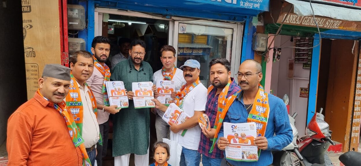 अल्मोड़ा। घर-घर जनसंपर्क अभियान के तहत आज पूर्व राज्यमंत्री गोविंद पिलखवाल के नेतृत्व में भारतीय जनता पार्टी के जनसंपर्क कार्यक्रम को नगर मंडल मुरलीमनोहर शक्ति केंद्र में नरसिंह बाड़ी दुगाल खोला में चलाया गया जिसमें 9 साल मोदी सरकार की सेवा, सुशासन और गरीब कल्याण के बारे में भ्रमण कर लोगों को केंद्र सरकार की जनकल्याणकारी योजनाओं के बारे में जानकारी दी एवं 9090902024 नंबर पर मिस कॉल कर भारतीय जनता पार्टी व मोदी सरकार को समर्थन की अपील की गई। आज के कार्यक्रम में पूर्व राज्यमंत्री गोविंद पिलखवाल,जिला मंत्री महेश बिष्ट,ओबीसी मोर्चा के प्रदेश कार्यकारिणी सदस्य अजय वर्मा,जिला मीडिया प्रभारी जगत तिवारी, नगर अध्यक्ष अमित साह मोनू, महामंत्री अर्जुन बिष्ट,नगर उपाध्यक्ष चंदन रावत,नगर मंत्री दिशांत पवार, आदि कार्यकर्ता उपस्थित थे।