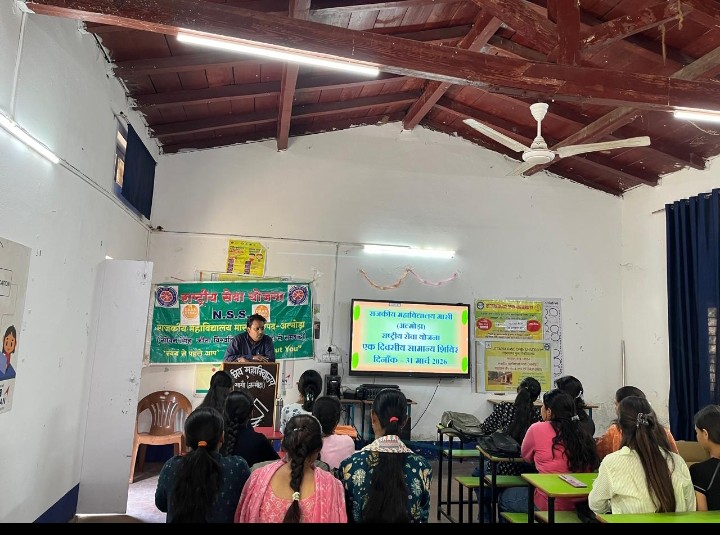 राजकीय महाविद्यालय मासी की राष्ट्रीय सेवा योजना इकाई द्वारा आज दिनाँक 31 मार्च 2026 को महाविद्यालय परिसर में एकदिवसीय सामान्य शिविर का आयोजन किया गया। जिसमें महाविद्यालय के एन०एस०एस० स्वयंसेवियों के द्वारा प्रतिभाग किया गया। सामान्य शिविर का प्रारम्भ लक्ष्य गीत के साथ किया गया, तत्पश्चात बौध्दिक सत्र में डॉ. गौरव कुमार द्वारा स्वयंसेवियों के जीवन में राष्ट्रीय सेवा योजना का महत्त्व एवं बी. व सी प्रमाण पत्र के महत्त्व पर अपने विचार व्यक्त किए। उसके पश्चात् स्वयंसेवियों के द्वारा पूरी निष्ठा के साथ महाविद्यालय परिसर की साफ-सफाई की गयी तथा परिसर में फूलों की क्यारियों का निर्माण किया गया। साफ-सफाई के पश्चात् स्वयंसेवियों के लिए महाविद्यालय में सूक्ष्म जलपान की व्यवस्था की गयी। इस अवसर पर महाविद्यालय के प्राचार्य प्रो० अखिलेख कुमार शुक्ल, एन०एस०एस० प्रभारी डॉ० पूरन राम, डॉ० अनुराधा, डॉ० राकेश कुमार, डॉ० गौरव कुमार, डॉ० पुष्कर काण्डपाल, लता शाह, देवेन्द्र सिंह रजवार, मनोज सिंह, गीता तिवारी तथा अन्य स्टाफ मौजूद रहे।