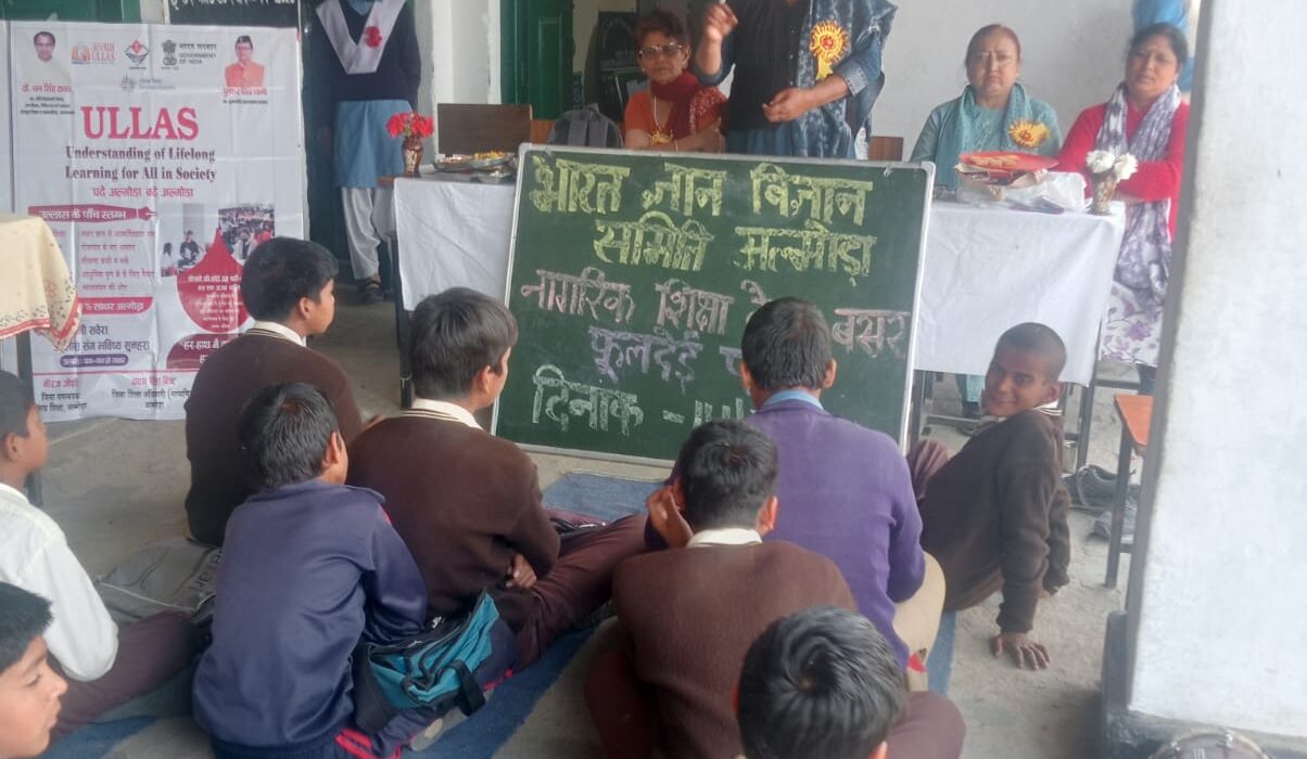अल्मोड़ा(उत्तराखंड) के तहत नागरिक शिक्षा केन्द्र – बसर ( हवालबाग) केन्द्र का विधिवत उद्घाटन उत्तराखंड के लोकपर्व फूलदेई के पूर्व दिवस पर राजकीय इण्टर कालेज-बसर (हवालबाग) में ज्ञान की अधिष्ठात्री माँ सरस्वती की प्रतिमा के सम्मुख भारत ज्ञान विज्ञान समिति के राज्य उपाध्यक्ष/जिलाध्यक्ष डॉ. विजया ढौढ़ियाल, जिला सचिव कृपाल सिंह शीला, समता सचिव भगवती गुसांई, विद्यालय की प्रधानाचार्या चन्द्रकला वर्मा द्वारा दीप प्रज्जवलन के साथ विधिवत उद्घाटन किया गया। इसके उपरांत विद्यालय की बालिकाओं द्वारा मंचस्थ अतिथियों का वैज लगातार स्वागत करने के साथ ही स्वागत गीत प्रस्तुत किया गया। इसी के साथ नवभारत साक्षरता कार्यक्रम “उल्लास” के तहत ग्राम- बसर व दरमाड़ की 11 महिलाओं को उल्लास के संबंध में दिशानिर्देशन व बातचीत के साथ उल्लास प्रवेशिका भी वितरित की गयी। उत्तराखंड के लोकपर्व फूलदेई पर विस्तार से बात रखते हुए डॉ. विजया ढौढ़ियाल द्वारा इस लोकपर्व की वैज्ञानिकता के संबंध में बच्चों के बीच अपनी बात साझा की। समता सचिव भगवती गुसांई द्वारा लोकपर्व फूलदेई को हम अपने बचपन में कैसे मनाया करते थे,उस पर अपनी बात बच्चों के बीच साझा की। भारत ज्ञान विज्ञान समिति जिला सचिव कृपाल सिंह शीला द्वारा अपने पारंपरिक त्योहारों को संरक्षित किये जाने पर जोर दिया। विद्यालय की प्रधानाचार्या चन्द्रकला वर्मा जी द्वारा सभी मंचस्थ अतिथियों का इस कार्यक्रम को सफल बनाने के लिए सभी का आभार व्यक्त करने के साथ लोकपर्व फूलदेई एक दिन का त्योहार न होकर देई पूजन को वार्षिक त्योहार बताया। इसके साथ ही मंचस्थ अतिथियों व विद्यालय की बालिकाओं की उपस्थिति में समता स्मारिका – 2026 “हमारा कारवाँ” का विमोचन किया गया। इसके उपरांत विद्यालय के 30 परिवार के बच्चों द्वारा ‘परिवार शैक्षिक सर्वेक्षण सूचना प्रपत्र भरे गये। जिसमें कक्षा -6 से 06,कक्षा-7 से 09, कक्षा – 8 से 11, कक्षा- 9 से 01, कक्षा-10 से 01, व कक्षा -11 से – 02 बच्चों द्वारा भरे प्रपत्रों से प्राप्त ऑकडो़ से दो परिवारों के बच्चों के माता- पिता निरक्षर पाये गये। सभी बच्चों से शपथ दिलाकर अपने परिवार के निरक्षर लोगों को साक्षर बनाने का निवेदन किया गया। विद्यालय के 10 बालिकाओं राशि भट्ट, पूजा जोशी, काजल आर्या, हर्षिता,विनीता तिवारी,रिया,बीना,भावना,योगिता काण्डपाल,दीया आर्या द्वारा उत्तराखंड के पारंपरिक परिधान के साथ फूलदेई की टोकरी तैयार की गयी थी। इन सभी प्रतिभागियों को इनके द्वारा सजायी गयी फूलों की टोकरी पर जिला अध्यक्ष डॉ. विजया ढौढ़ियाल द्वारा पुरस्कृत किया गया। इस अवसर पर राजकीय प्राथमिक विद्यालय – बसर की प्रधानाध्यापिका हेमा लटवाल व रा.इ.का. – बसर से प्रवक्ता इतिहास ममता राना व स.अ. 
