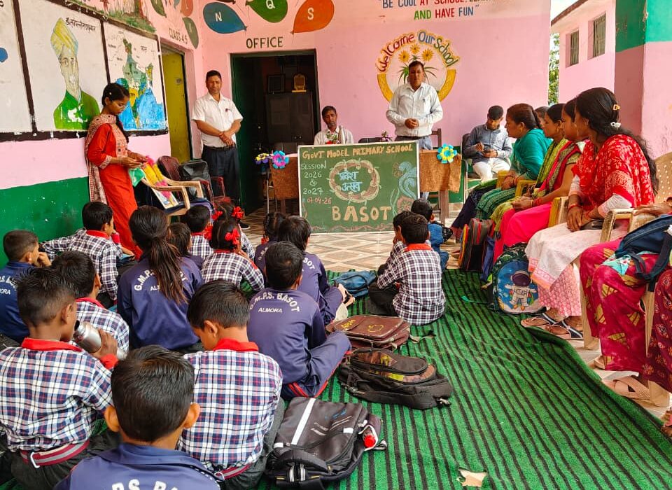 विद्यालयी शिक्षा में शैक्षिक सत्र -2026-27 नवप्रवेशी छात्र – छात्राओं का स्वागतोत्सव (प्रवेशोत्सव) एवं छात्र- अभिभावक- शिक्षक संगोष्ठी का आयोजन राजकीय आदर्श प्राथमिक विद्यालय – बासोट(भिकियासैंण) में बड़े हर्षोल्लास के साथ किया गया। प्रवेशोत्सव का शुभारंभ मंचस्थ अतिथियों रीता देवी, ज्योति देवी, सरोज वर्मा,प्रम प्रकाश, विद्यालय के प्रधानाध्यापक डी.एस.गिरी जी द्वारा ज्ञान की अधिष्ठात्री माँ सरस्वती की प्रतिमा पर दीप प्रज्वलन के साथ किया गया। इस अवसर पर विद्यालय के बच्चों गायत्री, भूमिका, अक्षिता, दीपिका, जानकी द्वारा सरस्वती वंदना व गौरव चन्द्र, लव भण्डारी, नितिन,मानस,योगेश,आरुष द्वारा अतिथियों के सम्मान में स्वागत गीत प्रस्तुत किया गया। विद्यालय के प्रधानाध्यापक डी.एस.गिरी जी द्वारा सभी मंचस्थ अतिथियों, अभिभावकों का आभार व्यक्त करते हुए प्रेवेशोत्सव व सरकार द्वारा सरकारी विद्यालय में पढ़ने वाले बच्चों को दी जाने वाली सुविधाओं के संबंध में विस्तार से जानकारी दी गयी। सभी से सरकारी विद्यालयों में अपने पाल्यों को पढ़ाने का निवेदन किया। इसके उपरांत नव प्रवेशी बच्चों कक्षा – 1 में लव भण्डारी, गौरव चन्द्र व जयेश, कक्षा – 4 में नयन,योगेश व कक्षा-5 में दक्ष गोस्वामी ने प्रवेश लिया। इन सभी बच्चों का विद्यालय परिवार द्वारा फूलमालाओं से भव्य स्वागत करने के साथ ही इन सभी नव प्रवेशी बच्चों की सैल्फी भी खिचायी गयी। सभी बच्चों को मध्यांतर में विशेष भोज पूड़ी, आलू,चने की सब्जी,खीर व फल में केले वितरित किये गये। मंचस्थ अतिथि रीता देवी, ज्योति देवी, सरोज वर्मा, रामदत्त उप्रेती, विद्यालय के शिक्षक ज्योति गोस्वामी ,ताजदार अंसारी, कृपाल सिंह शीला द्वारा नव प्रवेशी बच्चों को अपनी ओर से हार्दिक शुभकामनाएं दी गयी। विद्यालय के सभी बच्चों द्वारा नव प्रवेशी बच्चों कि स्वागत किया गया। प्रवेशोत्सव के उपरांत विद्यालय प्रबन्धन समिति की नयी कार्यकारिणी का विधिवत गठन भी किया गया। जिसमें सर्वसम्मति से रीता देवी को विद्यालय प्रबन्धन समिति का अध्यक्ष व वीना देवी को उपाध्यक्ष चयनित किया गया। इस अवसर पर दृष्टि, दीपिका, मोहित,हर्षित, करन,नवीन,गणेश,आर्यन, आदित्य की सक्रिय प्रतिभागिता रही। इस अवसर पर अभिभावक रीना देवी,आभा देवी,ज्योति देवी, सविता देवी,सन्तोषी देवी आदि की सक्रिय उपस्थिति रही। कार्यक्रम की अध्यक्षता रीता देवी व संचालन कृपाल सिंह द्वारा किया गया।