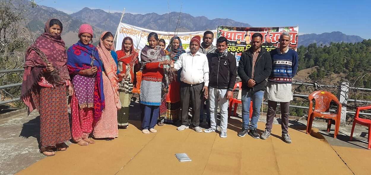 अल्मोड़ा| दिनांक 02/02/2023 को जगमोहन दीनदयाल ग्रामीण स्वरोजगार संस्था द्वारा संस्था के कार्यालय बसगांव जैंती विकासखंड लमगड़ा अल्मोड़ा में उद्यान विभाग (उद्यान सचल दल जैंती ) के सहयोग से शीतकालीन सत्र के अंतर्गत आने वाले फलदार पेड़ लगाने के लिए आडू, नाशपाती इत्यादि के पेड़ों का निशुल्क वितरण ग्राम पंचायत बसगांव के किसानों को जगमोहन दीनदयाल ग्रामीण स्वरोजगार संस्था के द्वारा किया गया|