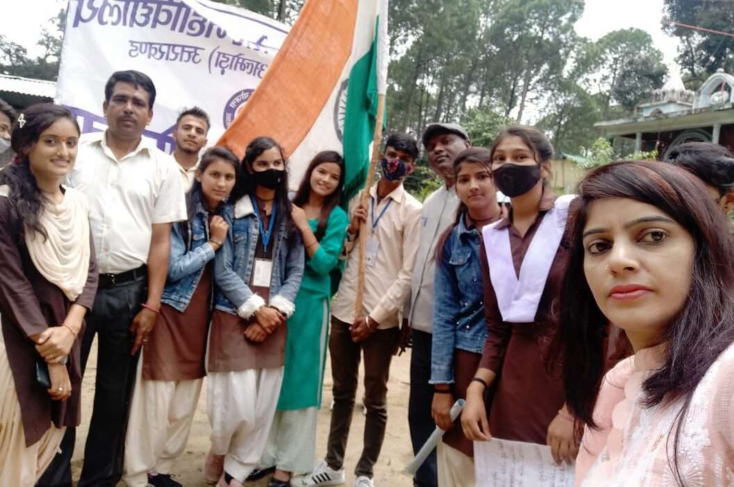 अल्मोड़ा।राजकीय स्नातकोत्तर महाविद्यालय कुणीधार,मानिला(अल्मोड़ा) में दिनांक 06/08/2022 को प्रभारी प्राचार्य के डॉ. गोरखनाथ के मार्गदर्शन में ‘हर घर तिरंगा’ अभियान संबंधी जनजागरूकता रैली का आयोजन किया गया।रैली महाविद्यालय परिसर से रथखाल बाजार तक भारत माता की जय,वंदे मातरम व देशभक्ति गीतों के जयघोष के साथ निकाली गयी।देशभक्ति की भावना से ओत-प्रोत स्वयंसेवियों ने रैली के माध्यम से स्थानीय निवासियों को 13,14 व 15 अगस्त को तिरंगा फहराने के लिए जागरूक किया। साथ ही राष्ट्रीय सेवा योजना कार्यक्रम अधिकारी डॉ. गार्गी लोहनी व प्राध्यापक डॉ. गोरखनाथ द्वारा छात्र/छात्राओं को हर घर तिरंगा अभियान की विस्तृत जानकारी दी गयी। प्रत्येक स्वयंसेवी ने अपने -अपने घरों में दिनांक 13 अगस्त,14 अगस्त व 15 अगस्त को तिरंगा फहराने का संकल्प लिया।डॉ. गार्गी लोहनी ने तिरंगा फहराने संबंधी उचित तरीकों पर भी विस्तारपूर्वक प्रकाश डाला।साथ ही इस अवसर पर महाविद्यालय में विभिन्न प्रतियोगिताएं; यथा-पोस्टर,स्लोगन लेखन,निबंध,तिरंगा निर्माण आदि आयोजित की गयीं।