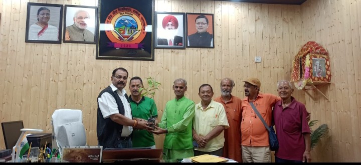 अल्मोड़ा। ग्रीन मैन ऑफ इंडिया विजयपाल बघेल ने सोबन सिंह जीना विश्वविद्यालय के कुलपति प्रो0 सतपाल सिंह बिष्ट से मिलकर पौध भेंट किया। पर्यावरण के संरक्षण को लेकर देश-दुनिया में अलख जगाने वाले विजयपाल बघेल ने अभी तक दस लाख से अधिक पेड़ों को बचाया है। मुलाकात के दौरान उन्होंने विश्वविद्यालय में हरेला गतिविधियों को लेकर भी चर्चा की। कुलपति प्रो0 सतपाल सिंह बिष्ट ने ग्रीन मैन ऑफ इंडिया विजयपाल को हरेला पीठ की गतिविधियों की जानकारी दी और उन्होंने बताया कि हरेला पीठ के द्वारा आयोजित गतिविधियों की रिपोर्ट शीघ्र ही शासन को भेजी जाएगी। विश्वविद्यालय में हरेला पर्व के तहत कई गतिविधियों का संचालन किया जा रहा है।