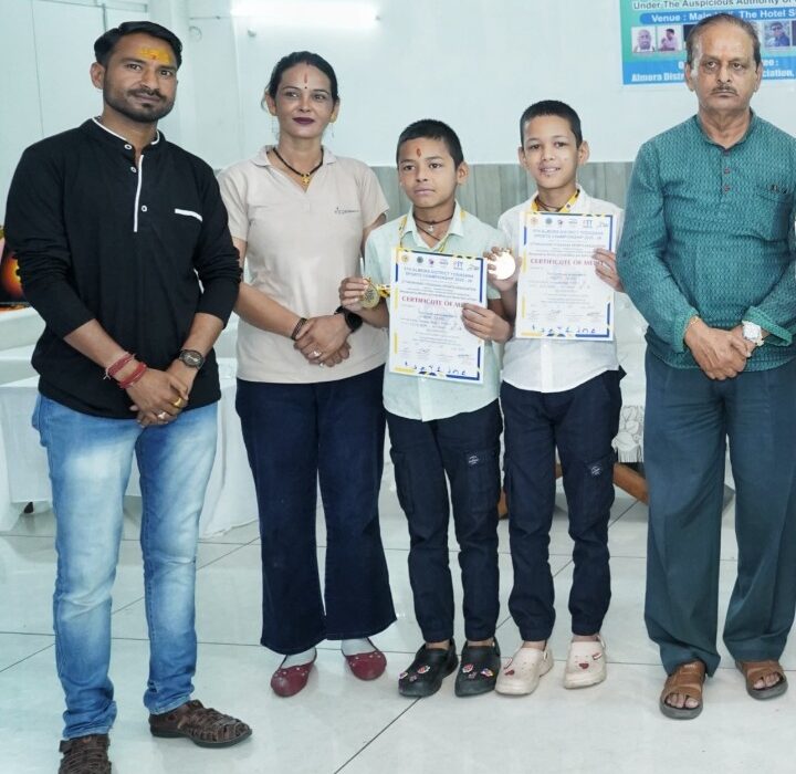 क्षइस उपलक्ष्य में अल्मोड़ा के विधायक मनोज तिवारी, एसोसिएशन प्रदेश अध्यक्ष सतीश जोशी, जिलाध्यक्ष कांग्रेस राधा बिष्ट, मनोज सनवाल, महासचिव कमल कुमार बिष्ट, नीलेश जोशी, दीदी प्रज्ञा जोशी, छात्रों की माता आशा दोसाद, अनन्त बिष्ट, गिरीश अधिकारी, कमल जोशी, मनोज पाण्डे, कोच यशपाल भट्ट ने छात्र मयूर दोसाद व आदित्य दोसाद को शुभकामनाएं व उज्जवल भविष्य हेतु आशीर्वाद प्रदान किया।