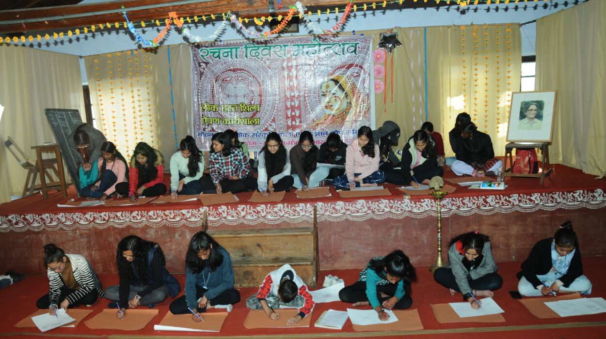 अल्मोड़ा| मोहन उप्रेती लोक संस्कृति कला एवं विज्ञान शोध समिति के तत्वावधान में रचना दिवस महोत्सव के कार्यक्रम की शुरुआत एडम्स इण्टर कॉलेज के हॉल मे कुमाऊनी लोक चित्र कला ऐपण की कार्यशाला से हुई|