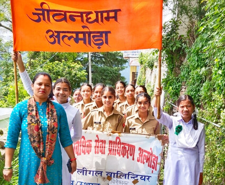 अल्मोड़ा। सचिव जिला विधिक सेवा प्राधिकरण के आदेशानुसार आज दिनांक 19.7.2023 को पैरा लीगल वालियंटर विनीता आर्या , नीमा बिनवाल द्वारा विवेकानंद बालिका विद्या मंदिर इंटर कॉलेज जीवन धाम अल्मोड़ा में विधिक जागरूकता शिविर, जागरूकता रैली व वृक्षारोपण का आयोजन किया गया जिसमें छात्राओं को महिला सशक्तिकरण ,जैविक अजैविक कूड़े के निस्तारण, सड़क सुरक्षा के नियमों, ई- सेवा केन्द्र, ई- फाइल, ई- टू- कापी, ई- कोर्ट सर्विसेज, एसिड अटैक विक्टिम 2016, बाल विवाह,बाल मजदूरी,भ्रूण हत्या, लिगं परीक्षण आदि की जानकारी प्रदान की गई। विवेकानंद बालिका विद्या मंदिर जीवनधाम अल्मोड़ा की प्रधानाचार्या गोदावरी चतुर्वेदी ने जिला विधिक के कार्यो की सराहना करते हुए अपने विचार वयक्त किये। इसके पश्चात पर्यावरण संरक्षण जागरूकता हेतु विद्यालय परिसर से ढूंगाधारा तक जागरूकता रैली निकाली गई। जिसमें विनीता आर्या, नीमा बिनवाल, आचार्या विनीता जड़ौत, दिप्ती पाण्डेय व आचार्य यशपाल भट्ट उपस्थित थे। इसमें पर्यावरण संरक्षण संबंधित नारे लगाये गये। इसके साथ ही वृक्षारोपण भी किया गया।