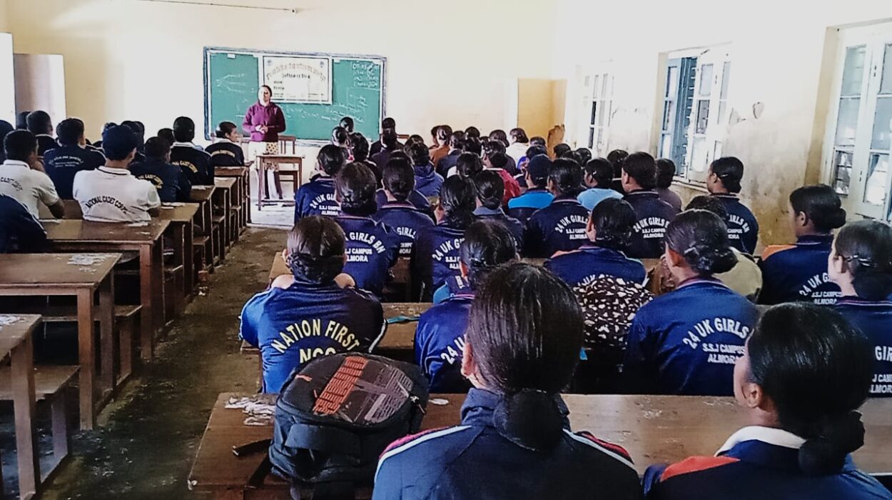 सचिव, जिला विधिक सेवा प्राधिकरण अल्मोड़ा शचि शर्मा के निर्देशानुसार दिनांक- 11/10/2025 को “अंतर्राष्ट्रीय बालिका दिवस” के अवसर पर अधिकार मित्र विनीता आर्या व संदीप सिंह नयाल द्वारा कला संकाय सोबन सिहं जीना विश्व विद्यालय अल्मोड़ा में विधिक जागरूकता शिविर आयोजन किया गया। उपस्थित छात्र छात्राओं व एन .सी.सी. कैडेट को बालिकाओं की शिक्षा,स्वास्थ्य,लैंगिक भेदभाव,कानूनी अधिकार बाल विवाह,पोक्सो अधिनियम, कन्या भ्रूण हत्या , चाईल्ड हैल्प लाइन नंबर 1098,नालसा (मानसिक बीमारी वाले व्यक्तियों और बौद्धिक विकलांग व्यक्तियों के लिए कानूनी सेवाएं) योजना, 2024, नालसा हेल्पलाइन नंबर 15100 आदि के विषय में जानकारी दी गई। अंतर्राष्ट्रीय बालिका दिवस के अवसर पर कला संकाय से मिडिल कैम्पस तक जागरुकता रैली निकाली गई जिसमें बालिकाओं के अधिकार संबंधित नारे लगाये गये।
