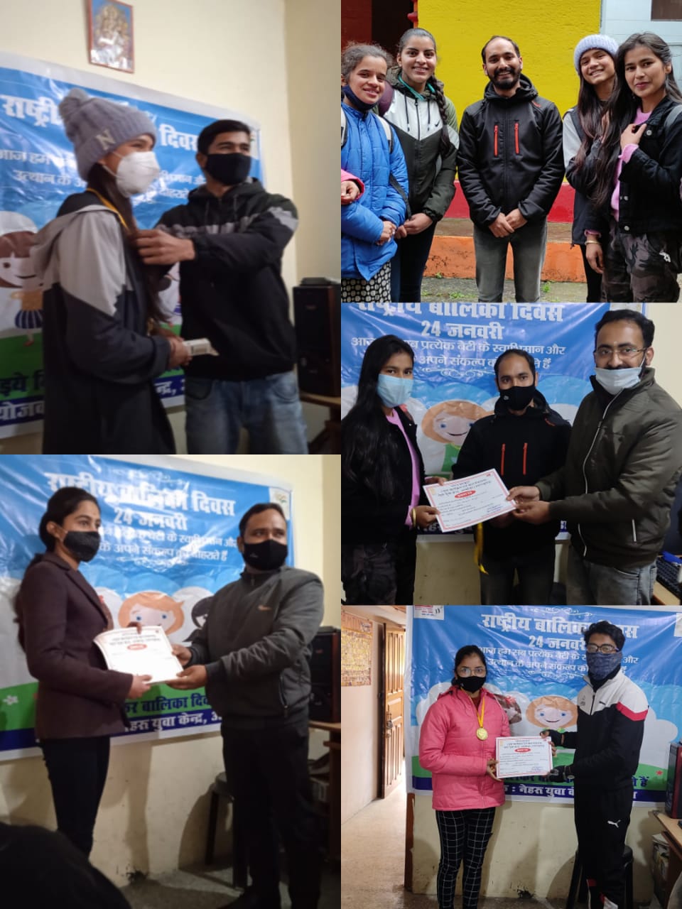 अल्मोड़ा| आज बालिका दिवस के अवसर पर नेहरू युवा केंद्र अल्मोड़ा में भाषण प्रतियोगिता का आयोजन किया गया| जिसमें विभिन्न बालिकाओं ने हिस्सा लिया| भाषण प्रतियोगिता में प्रथम स्थान पर लाल बहादुर शास्त्री संस्थान अल्मोड़ा की छात्रा लता पालीवाल द्वितीय स्थान पर संजना बिष्ट तथा तृतीय स्थान पर लता पाठक रही| इनके अलावा वहां पर और भी बालिकाओं ने आज महिलाओं की स्थिति पर अपने-अपने विचार रखें| कहां की महिलाएं आज पुरुषों के साथ कंधे से कंधा मिलाकर चल रही है| इतिहास के कई उदाहरण देते हुए महिलाओं की स्थिति को बताया गया और आज समाज में महिलाओं की क्या स्थिति है इस बात पर भी छात्र-छात्राओं ने अपने विचार रखें| महिलाओं के साथ जो अत्याचार समाज में आज हो रहे हैं उनके विरुद्ध खुद महिलाओं को आवाज उठाने के लिए कहा गया|