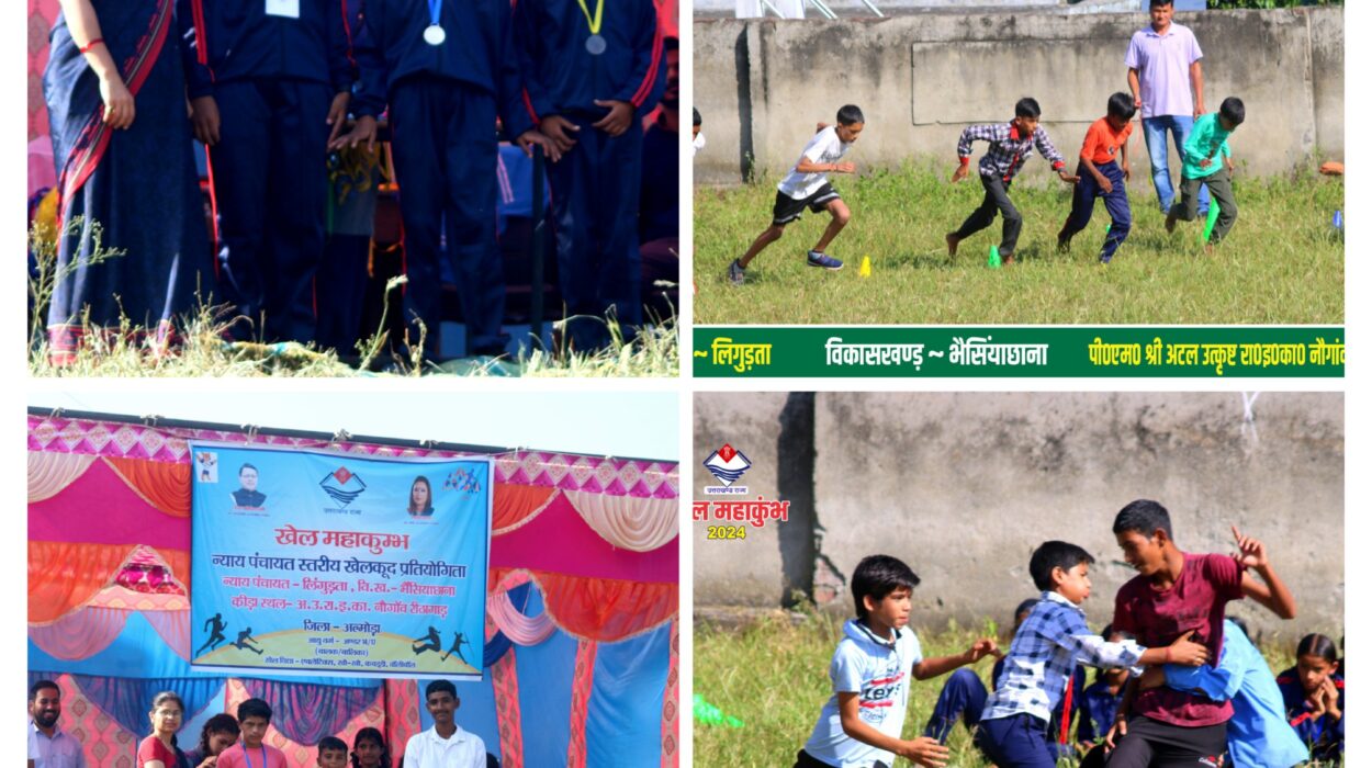 अल्मोड़ा। खण्ड शिक्षा अधिकारी हरीश रौतेला के दिशा निर्देशों और मार्गदर्शन में आज दिनांक 05.10.2024 को लिंगुणता न्याय पंचायत की न्याय पंचायत स्तरीय दो दिवसीय खेल महाकुम्भ प्रतियोगिता GIC नौगांव रीठागाड़ के क्रीड़ा मैदान में प्रारम्भ हुई। सर्वप्रथम मुख्य अतिथि ग्राम प्रधान गोपाल राम ने दीप प्रज्जवलित कर कार्यक्रम का शुभारम्भ किया। विशिष्ट अतिथि smc अध्यक्ष जगत सिंह नेगी ने सरस्वती की प्रतिमा पर माल्यार्पण किया । कार्यक्रम की संयोजक GIC नौगाँव की प्रधानाचार्य दीपिका पन्त ने सभी प्रतिभागियों को शुभकामनाएं प्रेषित की उन्होंने सभी प्रतिभागियों से खेलों के माध्यम से आगे बढ़ने की अपील की। GIC नौगांव की बच्चियों ने सरस्वती वंदना, स्वागत गीत प्रस्तुत किये। मुख्य अतिथि, विशिष्ट अतिथि व अन्य गणमान्य व्यक्तियों को बैच पहनाकर उनका स्वागत सत्कार किया गया। सभी प्रतिभागियों ने खेल भावना व स्वस्थ्य प्रतिस्पर्धा के साथ प्रतिभाग करने की शपथ ली। ततपश्चात अण्डर-14 व अण्डर-17 आयु वर्ग के बालक- बालिकाओं की विभिन्न प्रतियोगिताएँ आयोजित की गई। खेल महाकुम्भ के न्याय पंचायत प्रभारी गिरीश चन्द्र सिंह बिष्ट ने सभी प्रतिभागियों को आवश्यक दिशा निर्देश दिए।