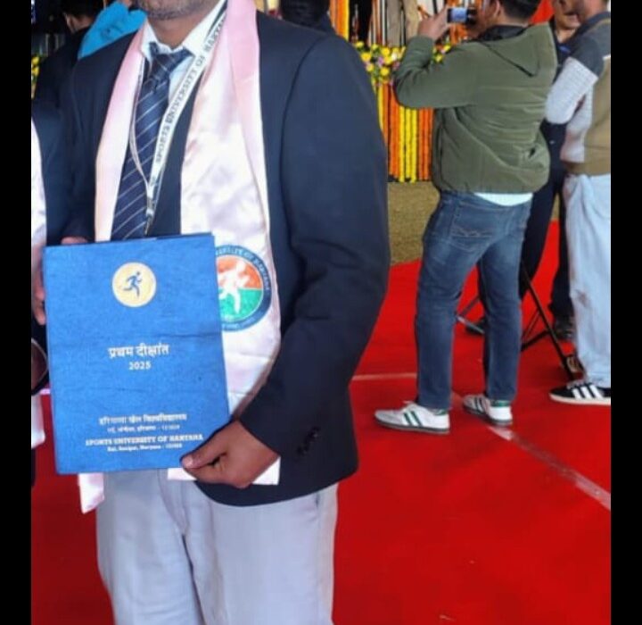 8 दिसंबर को हुए प्रथम दीक्षांत समारोह में उन्हें सम्मानित किया गया. यह उपलब्धि इसलिए भी ऐतिहासिक है क्योंकि यह कोर्स देश के सबसे प्रतिष्ठित खेल विश्वविद्यालयों में से एक में होता है और इसमें देश भर के टॉप खिलाड़ी व कोच हिस्सा लेते हैं। ऐसे में पूरे हरियाणा स्टेट में अव्वल आना अपने आप में एक कीर्तिमान है। उन्होंने अपनी जीत का श्रेय परिवार और दोस्तों को दिया है.