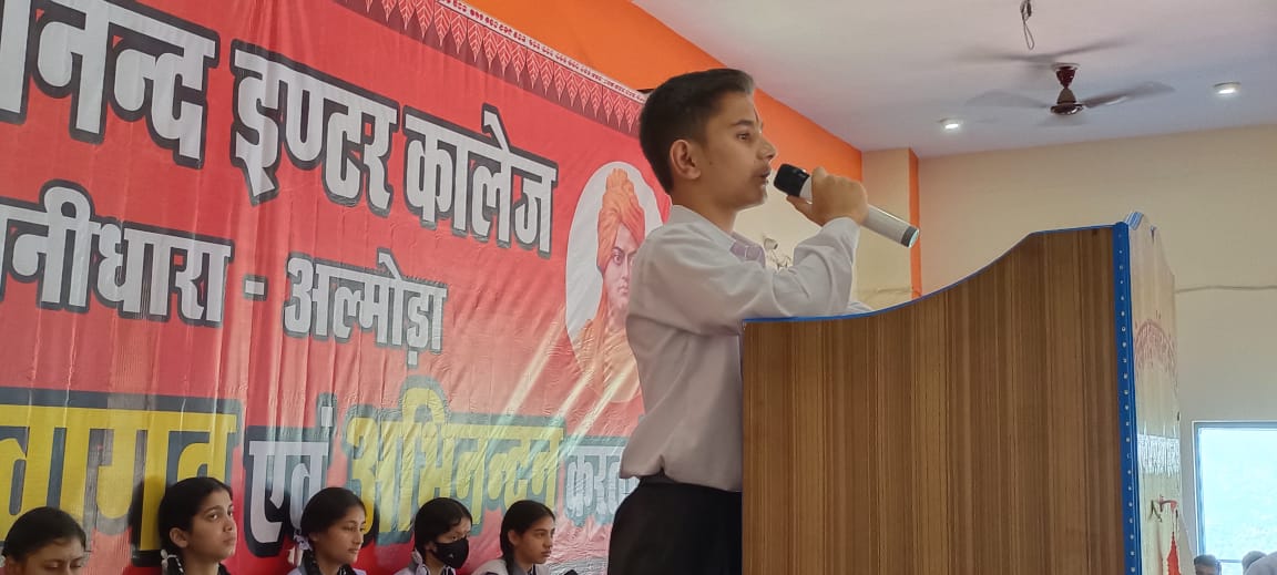 आज 15 जुलाई 2022 को अल्मोड़ा नगर में स्थित विवेकानंद इंटर कॉलेज, रानीधारा अल्मोड़ा में, आत्मनिर्भर भारत विषय को केंद्रित करते हुए भाषण प्रतियोगिता का आयोजन किया गया। इस प्रतियोगिता का मुख्य उद्देश्य छात्र – छात्राओं में आत्म निर्भर भारत के वृहद संदर्भ को जानने और उसे किस प्रकार व्यवहार में लाया जा सकता है को समझाना था।प्रतियोगिता में कक्षा 11वीं और 12वीं के विद्यार्थियों ने प्रतिभाग किया।