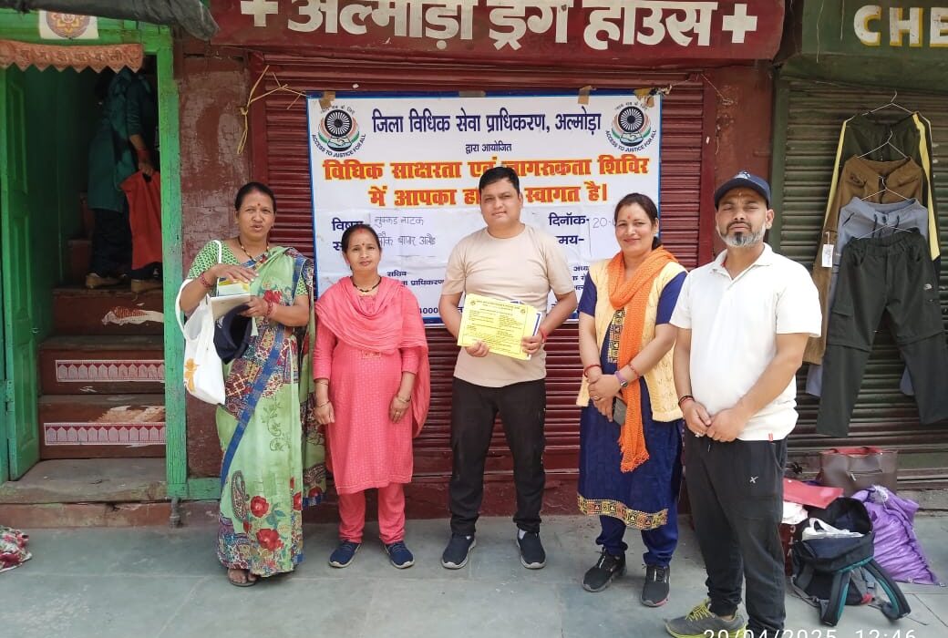 उत्तराखंड राज्य विधिक सेवा प्राधिकरण के निर्देशानुसार एवं अध्यक्ष जिला विधिक सेवा प्राधिकरण, अल्मोड़ा श्रीकांत पाण्डेय के मार्गदर्शन में शचि शर्मा सचिव, जिला विधिक सेवा प्राधिकरण अल्मोड़ा के आदेशानुसार दिनांक- 20/04/2025 को अधिकार मित्र संदीप सिंह नयाल, पंकज भगत, गोविन्दी बिष्ट, भावना आर्या, प्रियंका बहुगुणा