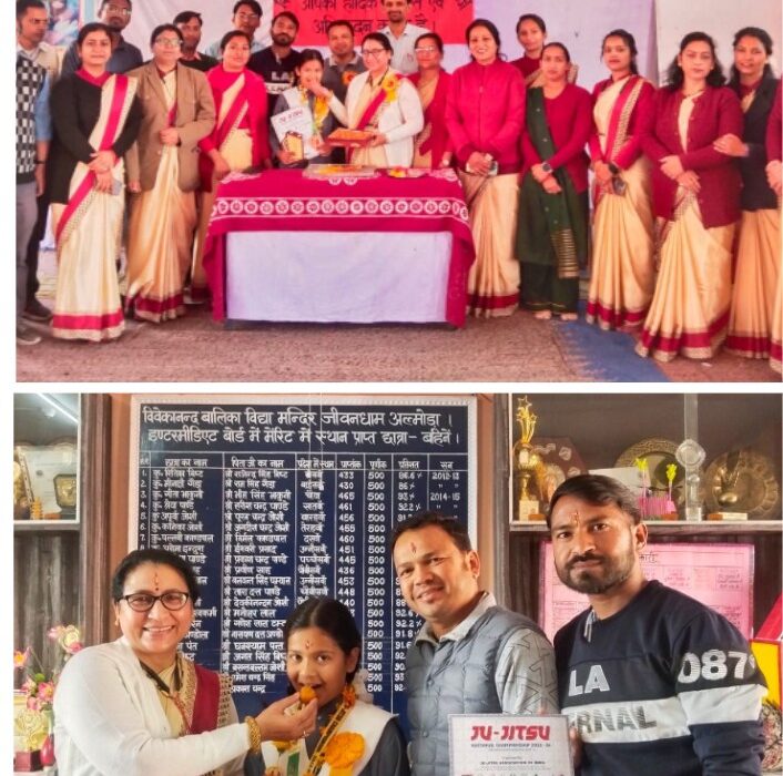 विवेकानंद बालिका विद्या मंदिर इंटर कालेज जीवनधाम अल्मोड़ा में छात्रा कु0 कृतिका अधिकारी व कोच यशपाल भट्ट का भव्य स्वागतहुआ। उत्तर प्रदेश लखनऊ में आयोजित राष्ट्रीय जूजित्सु प्रतियोगिता में उत्तराखंड अल्मोड़ा जिले की कृतिका अधिकारी ने अंडर-14, भार-(-36) किलो ग्राम वर्ग में कांस्य पदक (तृतीय स्थान) कर अपने उत्तराखंड राज्य का नाम रोशन किया है। कृतिका अधिकारी के अल्मोड़ा व अपने विद्यालय विवेकानंद बालिका विद्या मंदिर इंटर कॉलेज जीवनधाम में पहुंचने पर भव्य स्वागत किया गया।