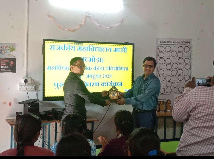 अल्मोड़ा। राजकीय महाविद्यालय मासी में दिनांक 16-10-2025 से 17-10-2025 तक दो दिवसीय वार्षिक क्रीडा का आयोजन किया गया। इन दो दिनों में महाविद्यालय में विभिन्न खेल प्रतियोगिताओं का आयोजन किया गया। जिसके अन्तर्गत दौड़ प्रतियोगिता, रिले रेस, गोला फेंक, चक्का फेंक, भाला फेंक, योग प्रतियोगिता, क्रिकेट, वालीबाल, लम्बी कूद आदि सम्मिलित हैं। जिसमें बालिका वर्ग में 100 मीटर दौड़ में प्रथम स्थान विद्या रावत द्वितीय स्थान मीना तथा तृतीय स्थान मीनल ने प्राप्त किया, 800 मीटर में प्रथम स्थान काजल, द्वितीय स्थान मीना तथा तृतीय स्थान भावना ने प्राप्त किया, रेले रेस में विद्या, मीनल तथा काजल ने बाजी मारी। बालीबाल प्रतियोगिता में बी. ए. तृतीय सेमेस्टर ने तथा क्रिकेट में बी. ए. पंचम सेमेस्टर ने बाजी मारी। बालक वर्ग में भाला क्षेपण में प्रथम स्थान करन, द्वितीय स्थान योगेश भंडारी तथा लम्बी कूद में प्रथम स्थान योगेश भंडारी, द्वितीय स्थान नीरज शर्मा तथा तृतीय स्थान नरेंद्र सिंह ने प्राप्त किया। वार्षिक क्रीडा महोत्सव के समापन के अवसर पर मुख्य अतिथि श्री कविन्द्र सिंह देव (शाखा प्रबंधक अल्मोड़ा जिला शाहकारी बैंक मासी) प्राचार्य प्रो0 अखिलेश कुमार शुक्ल, तथा अन्य द्वारा प्रतियोगिताओं में महिला एवं पुरुष वर्ग में प्रथम, द्वितीय तथा तृतीय स्थान पर विजयी प्रतिभागियों को महाविद्यालय में पुरस्कृत किया गया। कार्यक्रम का संचालन क्रीडा प्रभारी डा0 पूरन राम द्वारा किया गया। इस अवसर पर डा0 राकेश कुमार, डा0 अनुराधा, डा0 निशा, डा0 गौरव कुमार, डा0 पुष्कर काण्डपाल, लता शाह, चन्दन सिंह , डी. एस. रजवार, पूरन सिंह, सुनील कुमार, मनोज सिंह तथा गीता तिवारी मौजूद रहे।