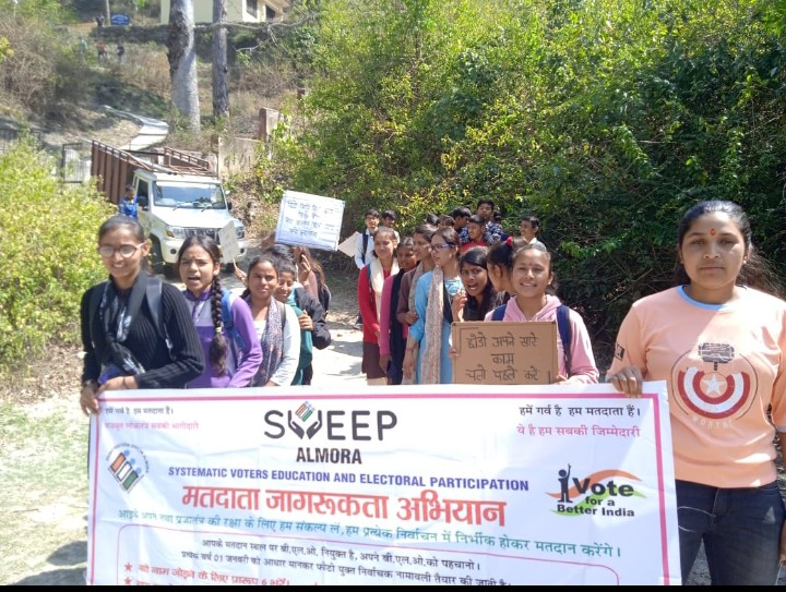 अल्मोड़ा:- राजकीय महाविद्यालय मासी द्वारा निकल गई मतदाता जागरूकता रैली