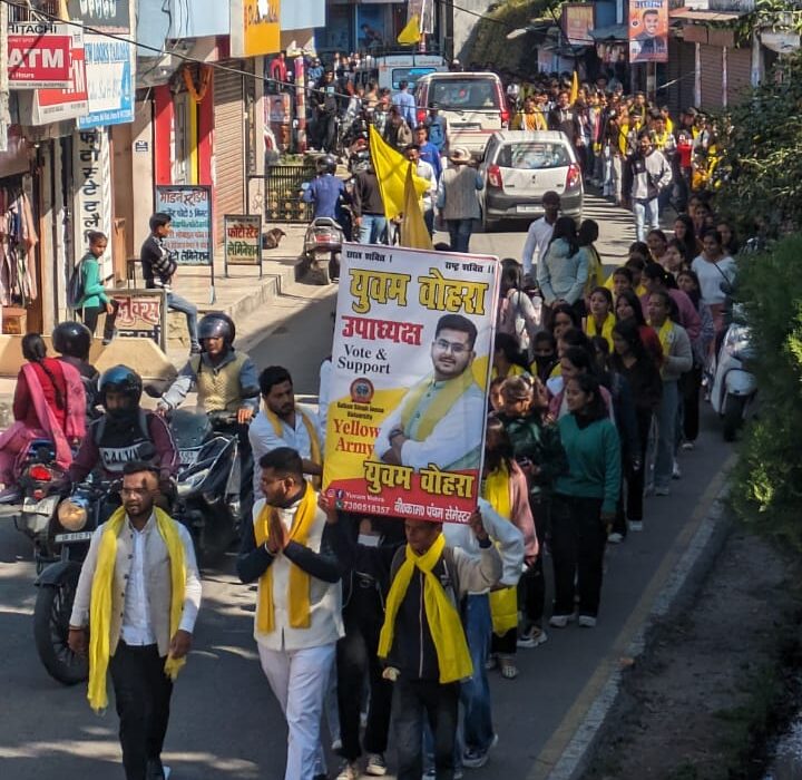 अल्मोड़ा| जैसे ही चुनाव के दिन नजदीक आ रहें हैं वैसे-वैसे एसएसजे परिसर अल्मोड़ा में गर्मागर्मी का माहौल शुरू हो गया है| इसी बीच छात्रसंघ उपाध्यक्ष प्रत्याशी युवम वोहरा की समर्थन रैली में जनसैलाब नजर आया।