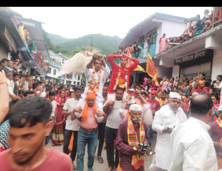 अपराह्न श्रद्धालु पोथिंग गांव से आए भगवती माता औऱ लाटू देवता के डंगरियों में भीम सिंह दानू औऱ खुशहाल सिंह कन्याल के स्वागत के लिए ढोल नगाड़ों के साथ पुल बाजार गएl यहां उन्होंने डंगरियों को तिलक लगाया, माला पहनाने के बाद आरती उतारी, जौ के दानों से पूजा करते ही उनमें आदि शक्ति भगवती माता औऱ लाटू देवता का अवतार हो गयाl देव डांगरों ने लोगों ने श्रद्धालुओं को आशीर्वाद दियाl इसके बाद श्रद्धालुओं ने दोनों देव डांगरों को अपने कंधों पर बैठाकर क़र भव्य शोभायात्रा निकालीl जिन जिन जगहों से होकर शोभायात्रा गुजरी वहां श्रद्धालुओं ने घरों की छतों औऱ खिड़कियों पर खडेन. देव डांगरों के ऊपर फूल औऱ चावल अर्पित क़र पूजा कीl मंदिर पहुंचने पर महा आरती हुईl देव डांगरों ने लोगों को आशीर्वाद दियाl व्यवस्थापक नवीन कपकोटी के अनुसार बुधवार को नंदा माई की मूर्ति को गाजे बाजे के साथ नंदा माई के मंदिर ले जाई जाएगीl वहां सुबह से पूजा पाठ होंगेl नंदा माई की विदाई के भंडारा शुरू होगा उन्होंने भंडारे में सभी से भंडारे में बढ़चढ़कर शामिल होने की अपील की हैl वहां कमेटी के अध्यक्ष डॉ. राजेंद्र सिंह कपकोटी, ग्राम प्रधान सीता कपकोटी, बीडीसी सदस्य विमला देवी, पुजारी भूपाल कपकोटी, गोविंद कपकोटी, पूर्व ग्राम प्रधान गणेश चंद्र उपाध्याय, पूर्व बीडीसी सदस्य चंद्र कपकोटी, नवीन कपकोटी, महिमन कपकोटी, तारा कपकोटी, जमन बिष्ट, हरीश बिष्ट, राम चंद्र जोशी, गिरीश जोशी, तनुज तिरुवा, दरबान, हिम्मत, श्याम, गोपाल, नरेंद्र, गजेंद्र, बिशन, राजू, मनीष, हीरा, लक्ष्मण कपकोटी, दीवान बिष्ट, डॉ. भूपाल कपकोटी थेl