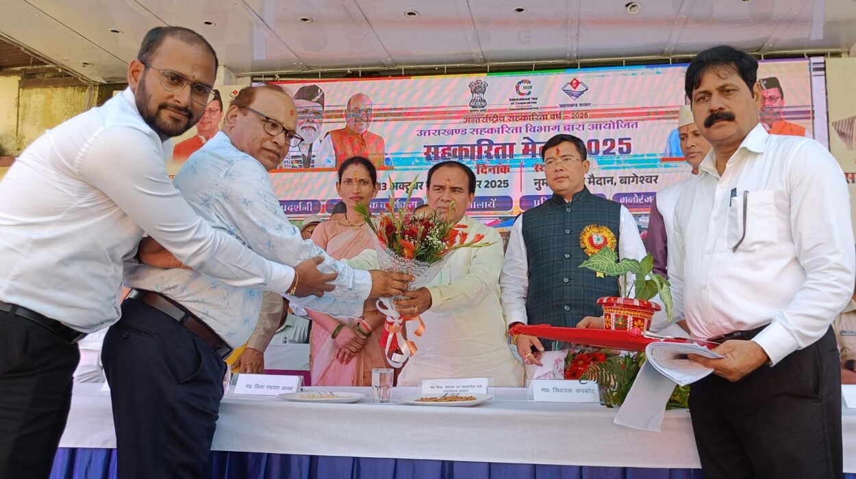 बागेश्वर । सहकारिता से पर्वतीय कृषि थीम पर नुमाइशखेत में आयोजित सहकारिता मेले के तीसरे दिन मुख्य अतिथि शिक्षा, स्वास्थ्य एवं सहकारिता मंत्री डॉ धन सिंह रावत ने दीप प्रज्ज्लित कर कार्यक्रम का शुभारंभ किया। वहीं इस दौरान उन्होंने 24 काश्तकारों को 24 लाख का ब्याज रहित ऋण और चार एमपैक्सों ऐठाण, दोफाड, काण्डा और छालीखांखर को माइक्रो एटीएम वितरित किए। इसके साथ ही केशवानंद जोशी की पुस्तक शकुन्तला नाटक का विमोचन किया। इस अवसर पर उन्होंने बताया कि संयुक्त राष्ट्र संघ ने 2025 को अंतराष्ट्रीय सहकारिता वर्ष घोषित किया है। प्रदेश भर में सहकारिता मेलों का आयोजन किया जा रहा है मेलों का मकसद यह है कि हर ब्लॉक के एक एक उत्पाद को वैश्विक स्तर तक ले जाया जाए। कॉपरेटिव एक ऐसी संस्था है जो स्थानीय उत्पाद को विश्व स्तर ले जाने का काम करती है। अभी तक 50 करोड का ऋण इन मेलों के माध्यम से वितरित किया गया है। उन्होंने बताया कि वर्तमान में 31 लाख किसान सहकारिता विभाग से जुडे हैं। जिसमें बागेश्वर के 57 हजार किसान भी शामिल हैं। सरकार द्वारा किसानों को 5 लाख तक व्याज रहित ऋण दिया जा रहा है। 16 लाख किसानों और 8.5 हजार महिला स्वयं सहायता समूहों को 5-5 लाख के ऋण जीरो प्रसेंट पर दिया गया है। उन्होंने कहा कि अच्छे काम करने वाली महिलाओं को पहले साल 21 हजार, दूसरे साल 50 हजार, तीसरे साल 1 लाख का लोन तथा महिला समूहों को 10 लाख तक का लोन बिना गारंटर दिया जाएगा। वहीं नगर निकायों के ढेली फड वालों को 09 नवम्बर के बाद 5 से 10 हजार तक 3 से 5 प्रतिशत ब्याज पर ऋण दिया जाएगा।उन्होंने कहा कि आज मडुवा की कीमत 48 रूपये की गयी है। आर्गेनिक खेती को लेकर सरकार सहकारिता के माध्यम से प्रदेश के सभी ब्लॉकों में वीर माधो सिंह भण्डारी के नाम सामूहिक खेती की जाएगी। काश्तकारों से 400 नाली भूमि शेयर पर ली जाएगी और प्रत्येक ब्लॉक में खेती कर उत्पादित वस्तु को विश्व स्तर पर ले जाएंगे। उन्होंने कहा कि आप उत्पादन करिए उसको बेचने का काम सहकारिता विभाग करेगा। उन्होंने बताया कि काफलीगैर में डिग्री कॉलेज निर्माण जल्द शुरु हो जाएगा। कपकोट उप जिला चिकित्सालय के 30 करोड दिए गए हैं साथ ही डॉक्टरों की कमी को लेकर उन्होंने कहा कि बागेश्वर को अगले 45 दिन में 20 डॉक्टर दिए जाएंगे।