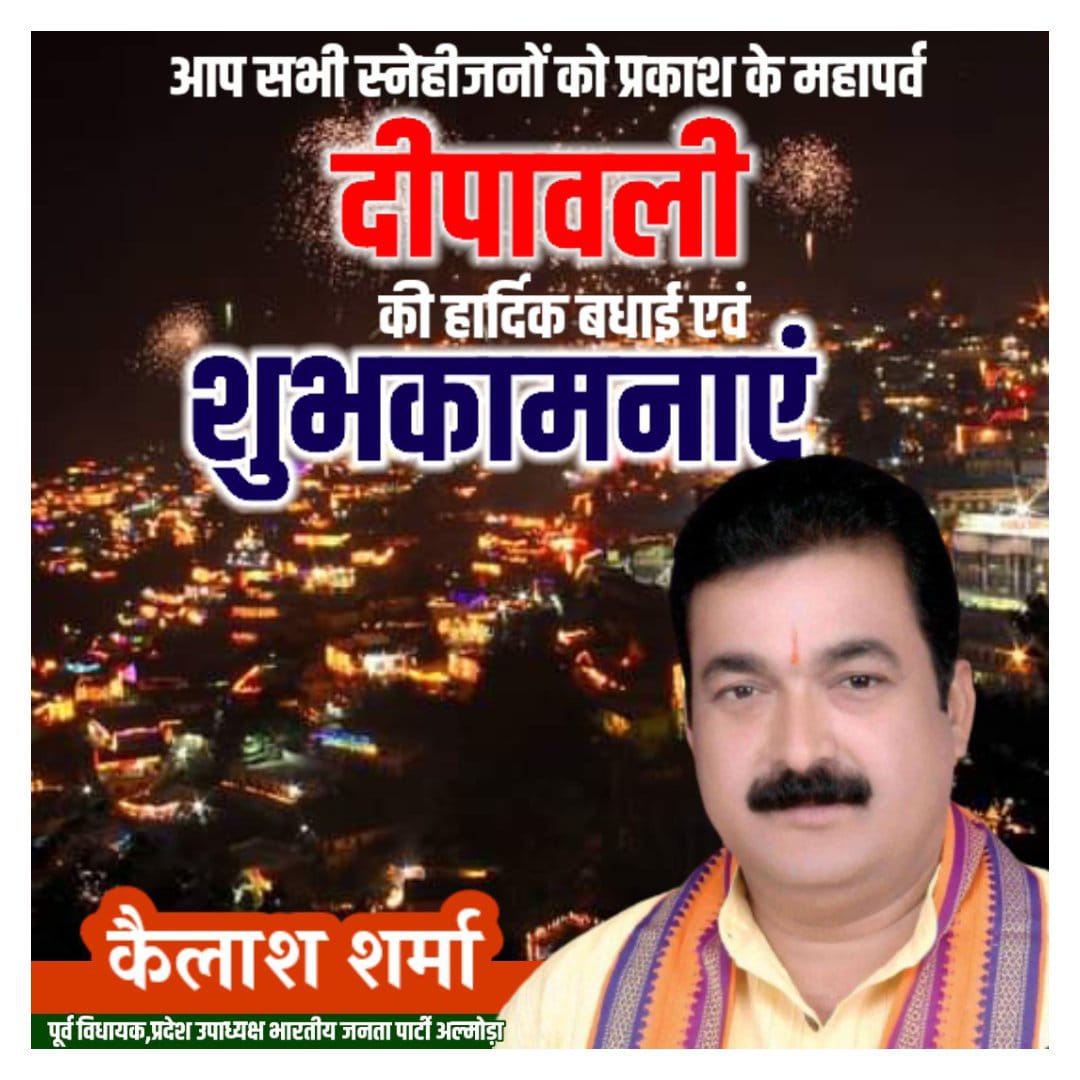 भारतीय जनता पार्टी के प्रदेश उपाध्यक्ष और अल्मोड़ा के पूर्व विधायक कैलाश शर्मा ने दीपावली को लेकर आमजन हेतु एक खास अपील जारी की है उन्होंने स्थानीय जनता से निवेदन में कहा है कि इस बार दीपावली की खरीदारी स्थानीय बाजार से ही करें ताकि स्थानीय व्यापारियों के घर में दीपावली की और भी अधिक रौनक हो सके।