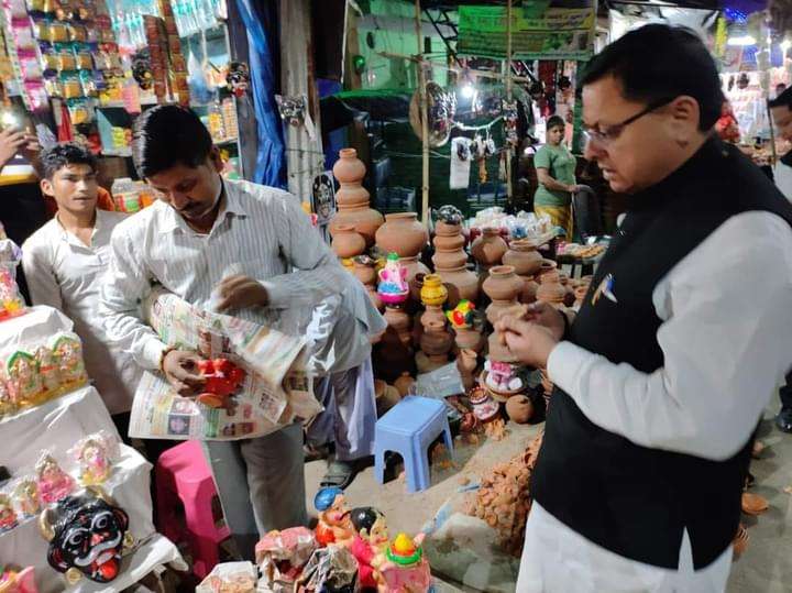 देहरादून| काशीपुर से खटीमा पहुंचे मुख्यमंत्री धामी ने खटीमा मुख्य बाजार में काफिला रुकवाकर हाथ से बने मिट्टी के दीयों की खरीदारी की| उन्होंने इसे पीएम मोदी के आवाहन के अनुरूप वोकल फॉर लोकल के महाअभियान को बढ़ावा देता छोटा सा सहयोग बताया|