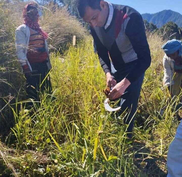 उत्तरकाशी| फसल पर क्रॉप कटिंग प्रयोग के दौरान उत्तरकाशी के ज्ञाणजा गांव में शुक्रवार को डीएम जब स्थलीय निरीक्षण के लिए पहुंचे तो वह भी हाथ में दराती लेकर खुद फसल काटने लगे| उन्हें ऐसा करते देख वहां के लोग भी हैरान रह गए|