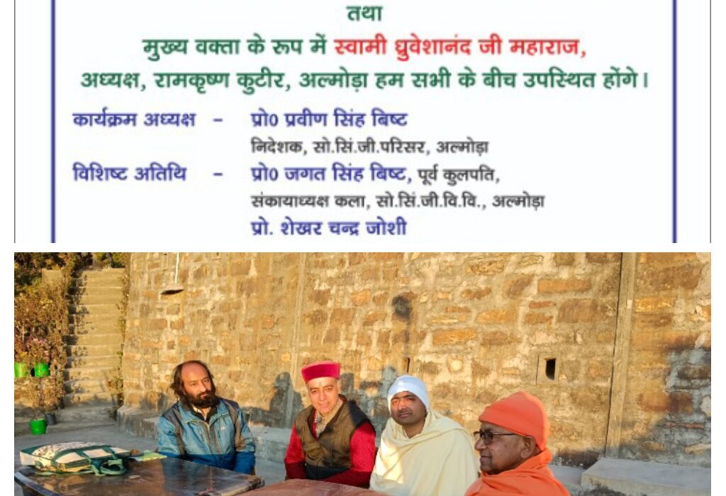 व्याख्यान के आयोजन को लेकर परिपथ अध्ययन केंद्र के संयोजक डॉ चंद्र प्रकाश फुलोरिया, सह संयोजक डॉ ललित जोशी, रामकृष्ण कुटीर के अध्यक्ष स्वामी ध्रुवेशानंद जी, अर्पण महाराज जी के बीच विस्तार से चर्चा हुई।