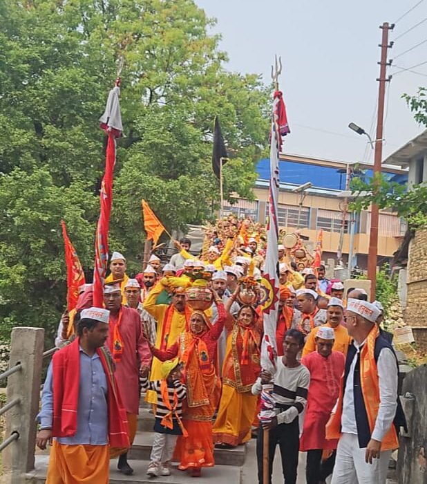 गरुड़ ।(बागेश्वर) । क्षेत्र की महिलाओं ने चक्रव्रतेश्वर मंदिर से श्री राम के जयकारों के बीच प्रसिद्ध बैजनाथ शिव -पार्वती मंदिर तक भव्य कलश यात्रा निकाली ।