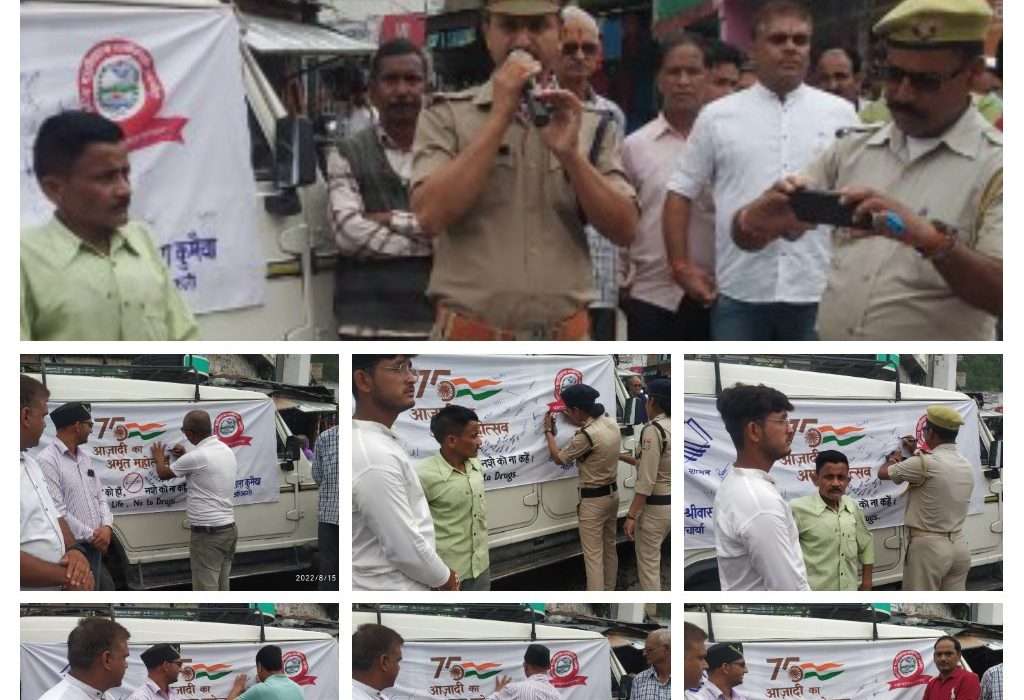 नशामुक्त देवभूमि हस्ताक्षर अभियान में अल्मोड़ा ,नोडल अधिकारी एसएसपी श्री प्रदीप कुमार राय को समर्थन देते हुए क्षेत्र के प्रबुद्ध नागरिक श्री पूरन करगेती ज, प्रतिष्ठित भाजपा जननेता श्री दिनेश जोशी ,इंस्पेक्टर श्री संजय पाठक द्वारा हस्ताक्षर कर एवम वक्तव्य देकर युवाओं को नशावृत्ति से दूरी बनाने की दिशा दी गई और सकारात्मक जीवन जीने के लिए प्रेरित किया गया। इसी कड़ी में हस्ताक्षर के माध्यम से व्यवसायी श्री गणेश लाल वर्माज ,श्री हरीश भट्ट ,श्री हरीश खुलबे ,श्री प्रकाश खुलबे , श्री ललित कराकोटी , श्री के एन खुल्बे ,श्री गौरव, श्री पंत ,समेत समस्त सम्मानित क्षेत्रवासियों समेत पुलिस महकमे द्वारा अभियान को समर्थन देते हुए माननीय धामीजी के नशा मुक्त देवभूमि अभियान को मजबूती प्रदान की गई ।