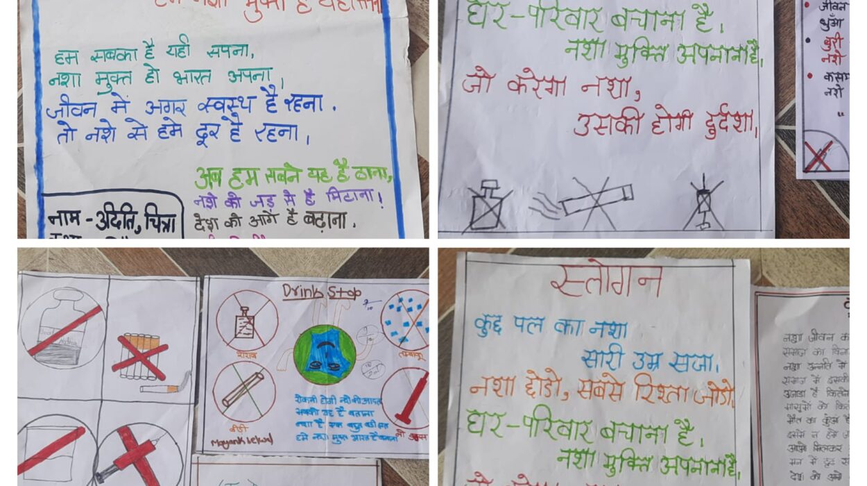 “नशामुक्ति अभियान सप्ताह ” के अन्तर्गत विभिन्न गतिविधियों के आयोजन के चतुर्थ दिवस की गतिविधि के अंतर्गत राजकीय आदर्श प्राथमिक विद्यालय में प्रारंभिक व माध्यमिक के 21 बच्चों ने शिक्षकों, अभिभावकों व प्रबुद्धजनों की उपस्थिति में स्लोगन, पेंटिंग एवं लोककथा में नशामुक्ति से संबन्धित कविता / गीत लेखन / गायन प्रतियोगिता आयोजित की गयी। जिसमें सभी बच्चों ने सक्रियता के साथ प्रतिभाग किया। नशामुक्ति के संबंध में नीलम पांडेय कार्यक्रम अधिकारी ग्राम्य विकास संस्थान, स्वामी राम हिमालयन विश्वविद्यालय देहरादून द्वारा ऑनलाइन माध्यम से ” किशोरों में अच्छी एवं बुरी आदतें तथा नशे के दुष्परिणाम ” पर अपना व्याख्यान रखा।