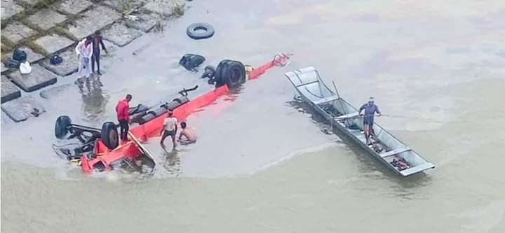 एक दर्दनाक हादसा सामने आ रहा है| मध्य प्रदेश के धार जिले के खलघाट में यात्रियों से भरी महाराष्ट्र परिवहन कि बस नर्मदा नदी में गिरने से 13 यात्रियों की मौत हो गई| हादसा सुबह 9:45 बजे का बताया जा रहा है| 13 लोगों के शव नदी से बरामद हो चुके हैं| हादसे में किसी भी यात्री की जान नहीं बची| बस को क्रेन कके जरिए निकाला जा चुका है| हादसा राॅन्ड साइड से आ रही एक मोटरसाइकिल सवार को बचाने के दौरान हुआ| बस पुल की रेलिंग तोड़ते हुए सीधे 25 फीट नीचे नदी में जा गिरी| यह हादसा खलघाट की पुरानी पुल पर हुआ है|