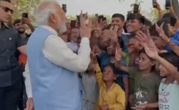 पीएम मोदी और बच्चों की इस बातचीत का वीडियो सामने आ रहा है| जिसमें वह बच्चों से उंगलियों से अलग-अलग तरह की आकृतियां बनाने के लिए कह रहे हैं| इतना ही नहीं वे खुद भी ऐसा करते दिख रहे हैं, जब प्रधानमंत्री ने बच्चों से पूछा कि वह बड़े होकर क्या बनना चाहते हैं?, इस पर बच्चों में से एक ने पुलिस को दूसरे में डॉक्टर और एक ने आईएएस बनने की बात कही| इस पर प्रधानमंत्री ने बच्चों से पूछा कि क्या आपका प्रधानमंत्री बनने का मन नहीं करता?, तो एक लड़के ने कहा कि आपके जैसा बनने का मन करता है|