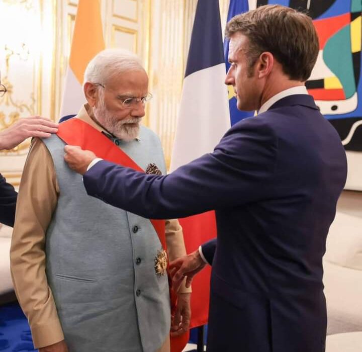 इन दिनों प्रधानमंत्री नरेंद्र मोदी फ्रांस दौरे पर हैं| जहां राष्ट्रपति इमैनुएल मैक्रों ने प्रधानमंत्री मोदी को फ्रांस का सर्वोच्च सम्मान ‘ग्रैंड क्रॉस ऑफ द लीजन ऑफ ऑनर’ से सम्मानित किया|