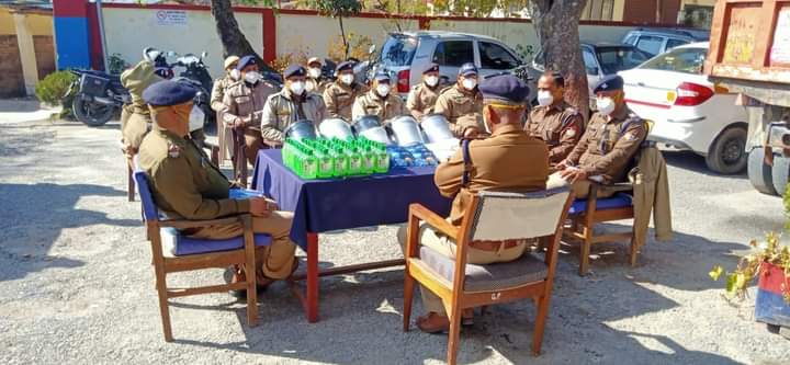 आगामी विधानसभा चुनाव को सकुशल सम्पन्न कराने हेतु थानाध्यक्ष द्वाराहाट ने समस्त अधि0/कर्मचारियों की गोष्ठी का आयोजन कर दिये दिशा निर्देशडा0 मंजूनाथ टीसी वरिष्ठ पुलिस अधीक्षक अल्मोड़ा द्वारा आगामी विधानसभा चुनाव को सकुशल सम्पन्न कराने के दृष्टिगत मासिक अपराध गोष्ठी में दिये गये आवश्यक दिशा निर्देशों आज दिनांक 14.01.2022 को थानाध्यक्ष द्वाराहाट राजेन्द्र सिंह विष्ट द्वारा थाना द्वाराहाट में समस्त अधिकारी/कर्मचारियों की मीटिंग आयोजित करते हुए विधानसभा चुनाव को शान्तिपूर्वक/भयमुक्त/निष्पक्ष रुप से सम्पन्न कराये जाने हेतु आवश्यक दिशा निर्देश देते हुए समस्त अधि0/कर्मचारियों को फेससिल्ड, सैनिटाईजर एवं N95 मास्क वितरित किये गये।