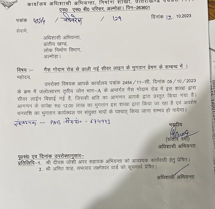 अल्मोड़ा| लंबे समय से लक्ष्मेश्वर वार्ड के सभासद अमित शाह मोनू गैस गोदाम लिंक मोटर मार्ग के सुधारीकरण की मांग के लिए लगातार संघर्षरत थे। उनके द्वारा लगातार प्रशासन एवं संबंधित विभाग से मांग की जा रही थी कि जनहित में अविलंब गैस गोदाम लिंक मोटर मार्ग का सुधारीकरण किया जाए। विदित हो कि गैस गोदाम लिंक मोटर मार्ग नगर का एक मुख्य मोटर मार्ग है जो अल्मोड़ा की यातायात व्यवस्था का दबाव कम करने भी काम करता है। परंतु कुछ माह पूर्व जल निगम के द्वारा सीवर लाइन के लिए उक्त मोटर मार्ग को खोदा गया थ।