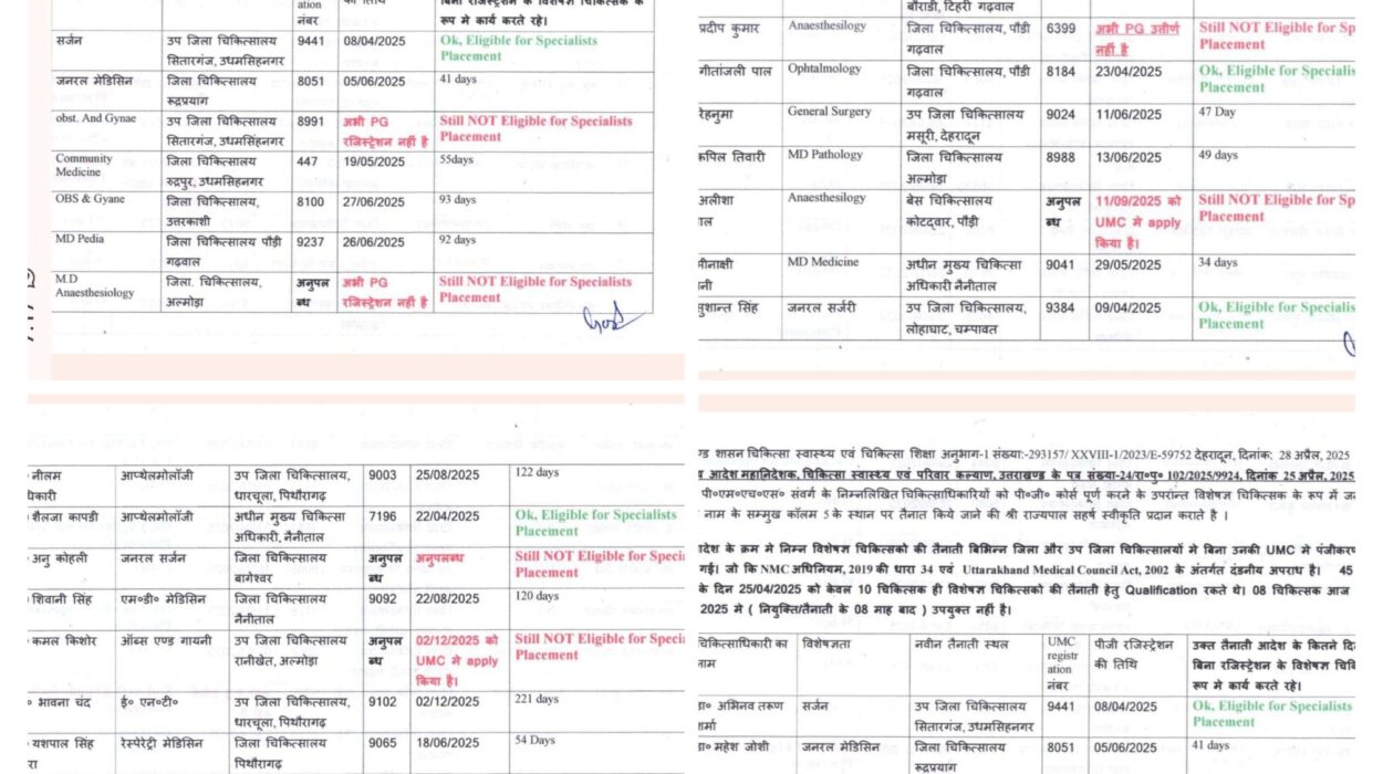 उत्तराखंड के अस्पतालों में विशेषज्ञ डॉक्टरों की तैनाती को लेकर बड़ा खुलासा हुआ है। आरोप है कि कई स्थानों पर ऐसे डॉक्टरों को विशेषज्ञ के रूप में नियुक्त किया गया, जिनके पास न तो आवश्यक विशेषज्ञता (PG डिग्री) थी और न ही उत्तराखंड मेडिकल काउंसिल (UMC) का अनिवार्य पंजीकरण।