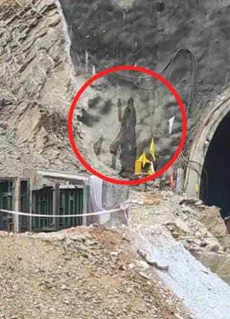 वहीं सोमवार के दिन एक फोटो वायरल हो रही है। टनल के बाहर भगवान शिव जैसी आकृति उभर आई है।तमाम मीडिया रिपोर्ट्स में इसका दावा किया जा रहा है। बता दें कि टनल के बाहर स्थापित बौखनाग देवता के मंदिर के पीछे भगवान शिव जैसी आकृति उभरी है। जिसकी तस्वीर भी सामने आई है।
