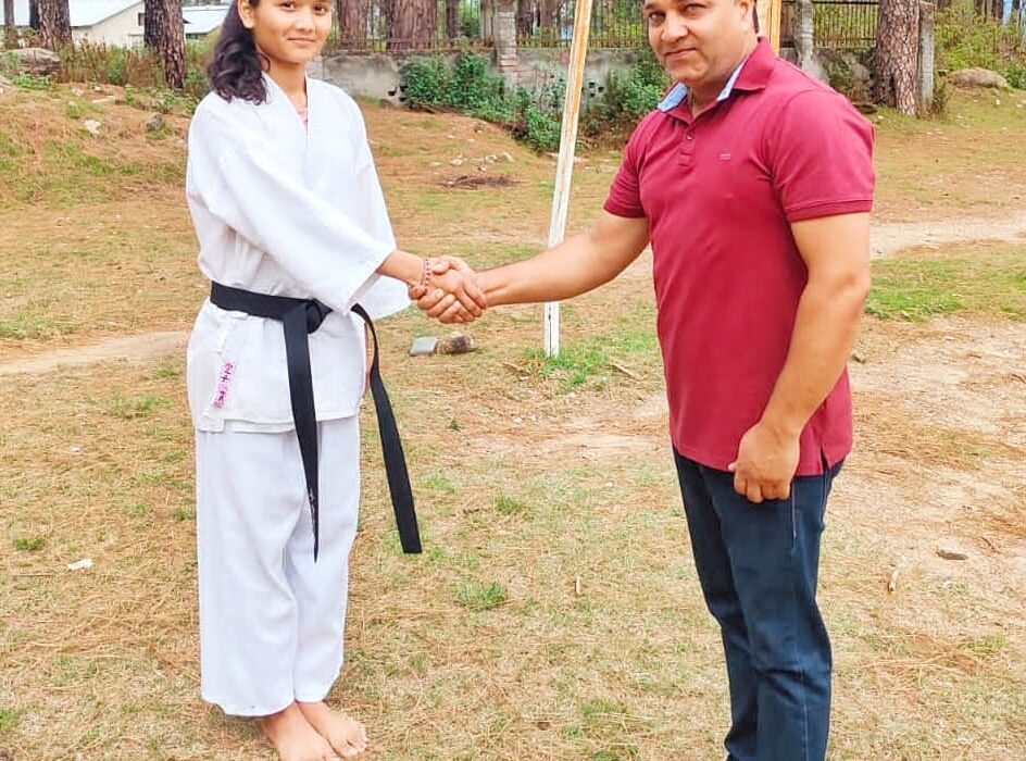 अल्मोड़ा| नेशनल कराटे एकेडमी इंडिया अल्मोड़ा शाखा की होनहार खिलाड़ी दक्षता राजपूत ने 2 वर्षों की कड़ी मेहनत के बाद कराटे में मास्टर डिग्री ब्लैक बेल्ट प्राप्त की है।
