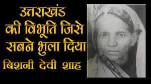 बागेश्वर की बिशनी देवी साह जिनका जन्म 12 अक्टूबर 1902 को बागेश्वर में हुआ था| छोटी सी उम्र में ही पति का निधन हो गया| महात्मा गांधी के जनजागृति आन्दोलन से प्रेरित होकर 19 वर्ष की उम्र में स्वतंत्रता आंदोलन में कूद गई| आंदोलन में सक्रिय होने की वजह से दिसंबर 1930 में विशनी देवी को गिरफ्तार कर जेल में डाल दिया गया| वह स्वतंत्रता आंदोलन के दौरान जेल जाने वाली उत्तराखंड की पहली महिला थी|
