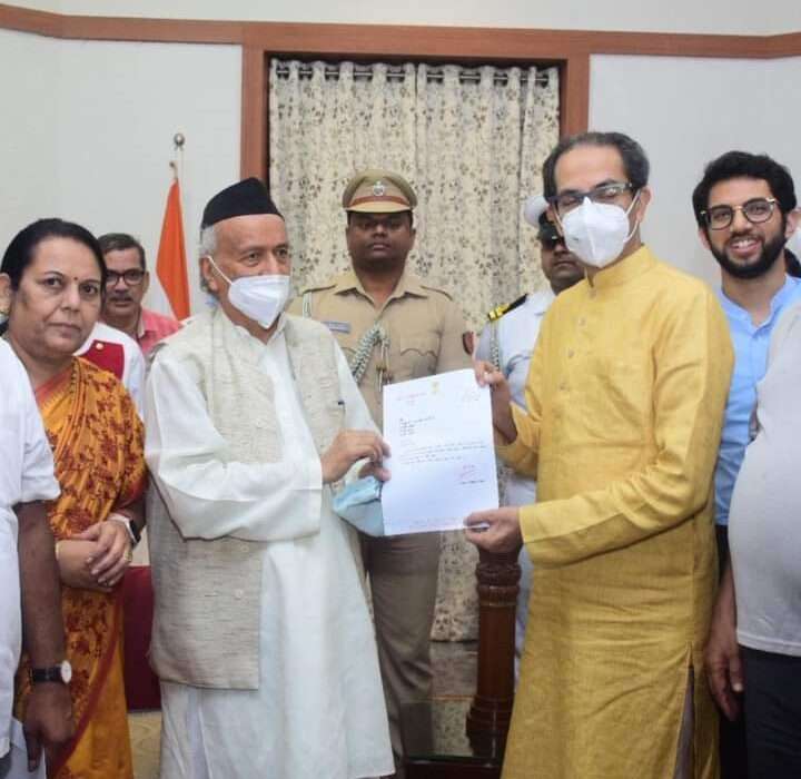 महाराष्ट्र के मुख्यमंत्री के रूप में उद्धव ठाकरे ने अपना इस्तीफा राज्य के राज्यपाल भगत सिंह कोश्यारी को राजभवन में सौंप दिया है| उन्होंने कहा कि मैं नहीं चाहता कि शिवसैनिकों का खून बहे इसलिए मैं पद झोड़ रहा हूं|