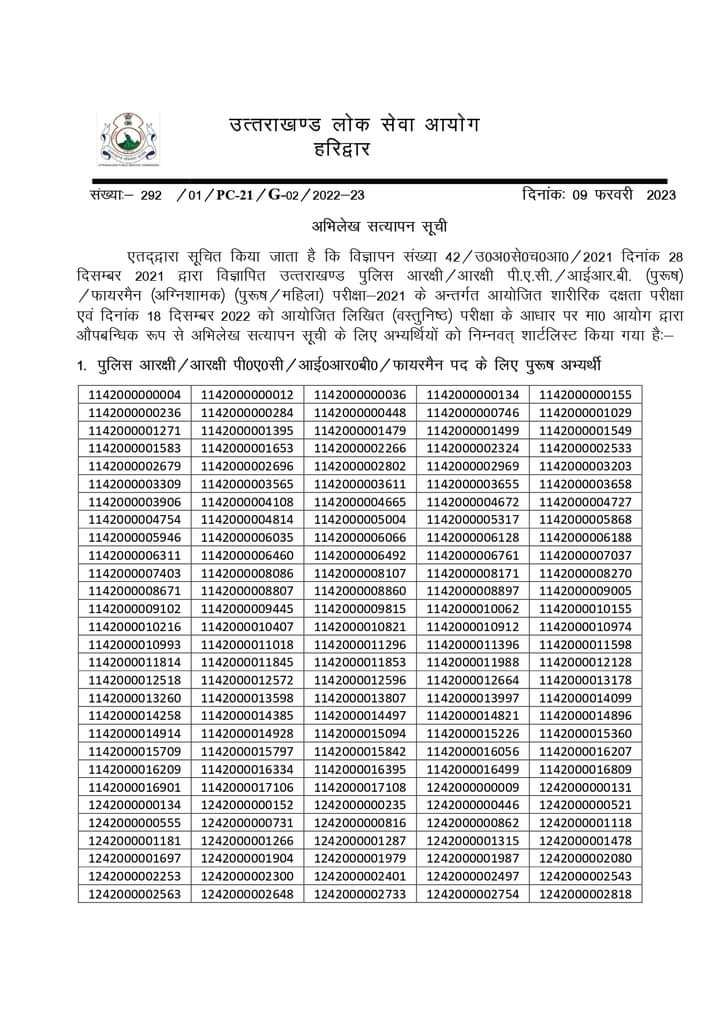 बता दें कि पुलिस कांस्टेबल के 1521 पदों के लिए दिसंबर 2022 में आयोग ने परीक्षा कराई थी| अब परीक्षा फल आने के बाद इसमें सफल अभ्यर्थियों की संख्या दो हजार से भी अधिक है| सभी सफल अभ्यर्थियों के अनंतिम परीक्षा फल को आयोग ने उनके अभिलेखों के सत्यापन के उद्देश्य से जारी किया है| अभिलेखों के सत्यापन के बाद अंतिम परीक्षा परिणाम जारी होगा|