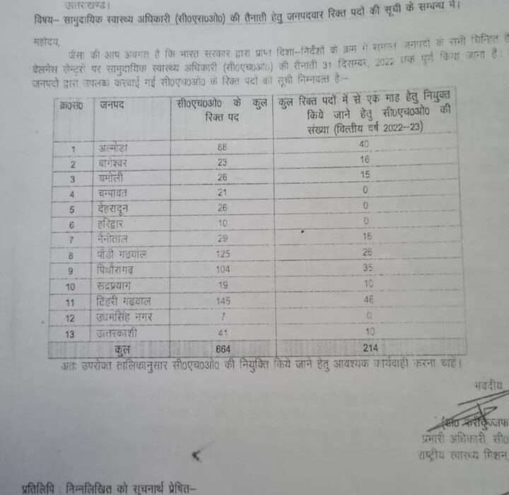 उत्तराखंड -: सामुदायिक स्वास्थ्य अधिकारियों के 664 पदों पर आवेदन शुरू, पढ़े अन्य जानकारी