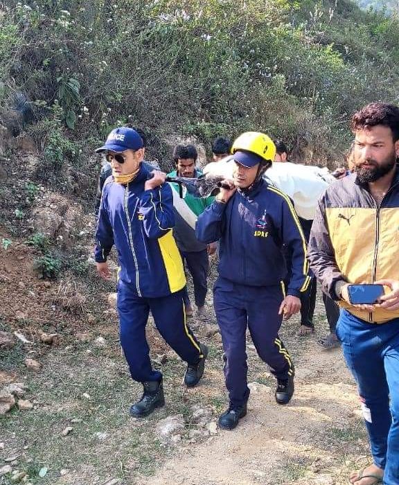 पिथौरागढ़| झूणी मलान से पिथौरागढ़ आ रही एक इको मारुति कार झूणी मलान मार्ग पर गहरी खाई में जा गिरी| स्थानीय लोगों ने सूचना पुलिस और एससीआरएफ की टीम को दी जिसके बाद मौके पर पहुंचे जवानों ने स्थानीय लोगों की मदद से रेस्क्यू अभियान किया| कार पर सवार पत्नी की मौत हो गई जबकि पति की हालत गंभीर बताई जा रही है| पिथौरागढ़ की जगदंबा कॉलोनी निवासी हिमालय पब्लिक स्कूल के मालिक हीरा सिंह खाती (45 वर्ष) अपनी निजी कार इको मारुति कार से भिटौली देकर पत्नी जानकी खाती (35 वर्ष) के साथ आज सुबह पिथौरागढ़ आ रहे थे| झूणी मलान मार्ग पर एक मोड़ पर मार्ग क्षतिग्रस्त होने से वाहन अधिक काटने से गहरी खाई में गिर गया| कार के खाई में गिरने की सूचना क्षेत्र के लोगों ने पुलिस को दी कुछ ही देर में पुलिस और एसडीआरएफ जवान वहां पहुंचे और स्थानीय लोगों की मदद से रेस्क्यू ऑपरेशन चलाया| खाई में जानकी खाती पत्नी हीरा सिंह खाती की मौत हो गई| और हीरा सिंह खाती घायल मिला| एसडीआरएफ के जवानों में घायल को सड़क तक लाकर पिथौरागढ़ जिला अस्पताल भेज दिया है| मृतका के शव को खाई से निकालकर जिला मुख्यालय लाया जा रहा है|