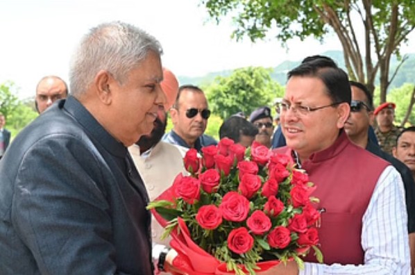 उत्तराखंड राज्य के मुख्यमंत्री पुष्कर सिंह धामी द्वारा उपराष्ट्रपति जगदीप धनखड़ से मुलाकात की गई और इस दौरान उन्होंने विभिन्न विकास योजनाओं पर भी चर्चा की। आज शुक्रवार को आर्मी हेलीपैड हल्द्वानी में मुख्यमंत्री ने उपराष्ट्रपति जगदीप धनखड़ से मुलाकात की। उपराष्ट्रपति अपने तीन दिवसीय उत्तराखंड प्रवास के समापन के पश्चात दिल्ली प्रस्थान से पूर्व हल्द्वानी पहुंचे थे इस अवसर पर उत्तराखंड के राज्यपाल लेफ्टिनेंट जनरल गुरमीत सिंह भी उपस्थित रहे और मुख्यमंत्री पुष्कर सिंह धामी द्वारा उनसे भेट की गई। इस दौरान राज्य से जुड़े महत्वपूर्ण विषयों एवं विभिन्न विकास योजनाओं पर भी विस्तृत चर्चा हुई। मुख्यमंत्री ने उपराष्ट्रपति के उत्तराखंड आगमन के लिए आभार व्यक्त करते हुए कहा कि उनकी यात्रा से प्रदेश को नई ऊर्जा और प्रेरणा मिली है और उपराष्ट्रपति ने भी उत्तराखंड की समृद्ध सांस्कृतिक विरासत, सैन्य परंपरा एवं सतत विकास की दिशा में हो रहे प्रयासों की सराहना की।